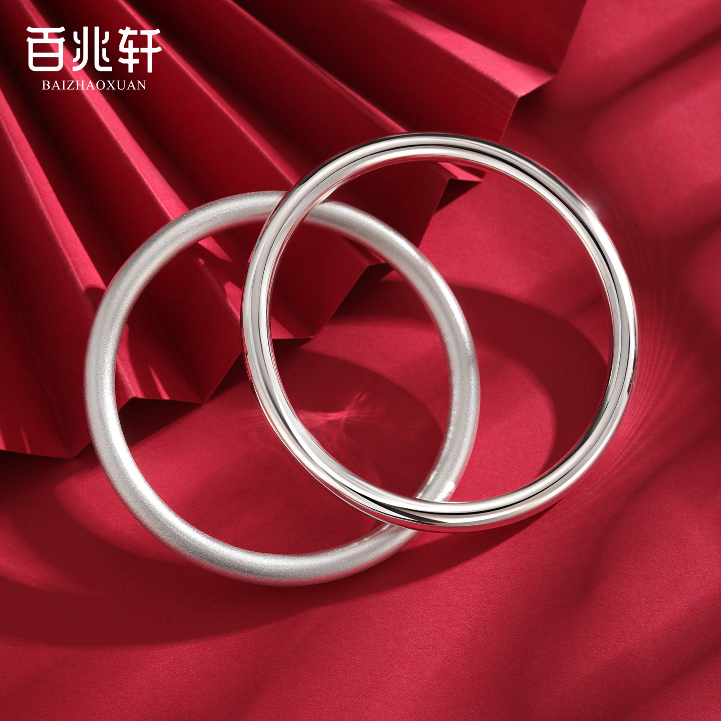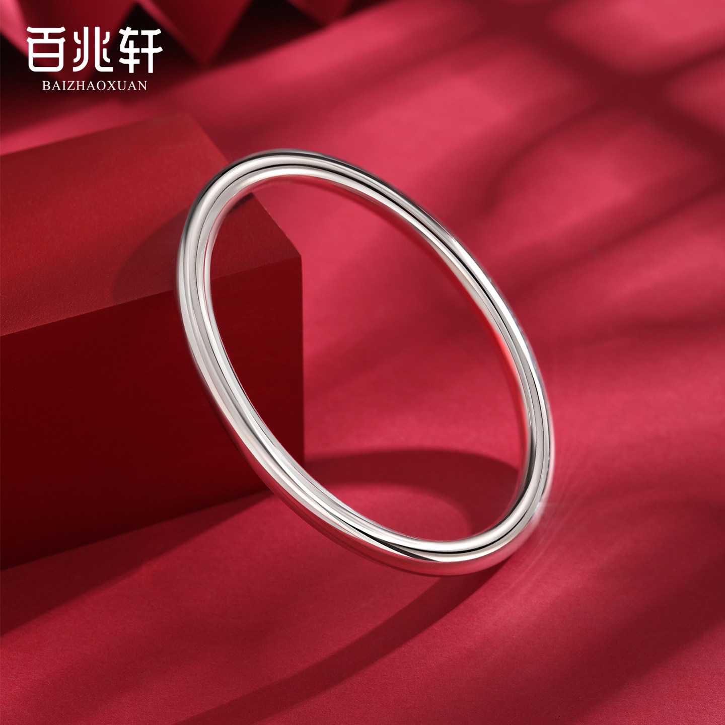 百兆轩S9999纯银实心银手镯女年轻款光面素圈足银镯子百搭送礼物