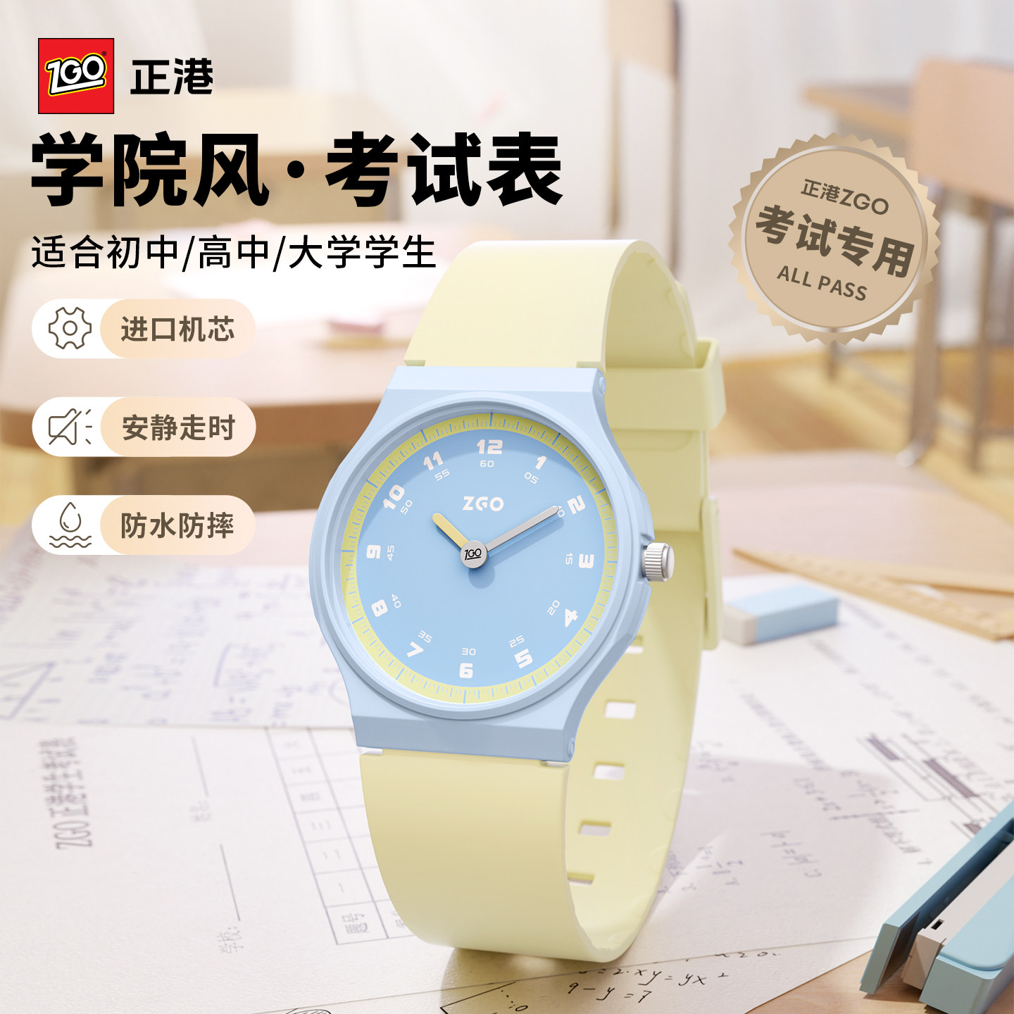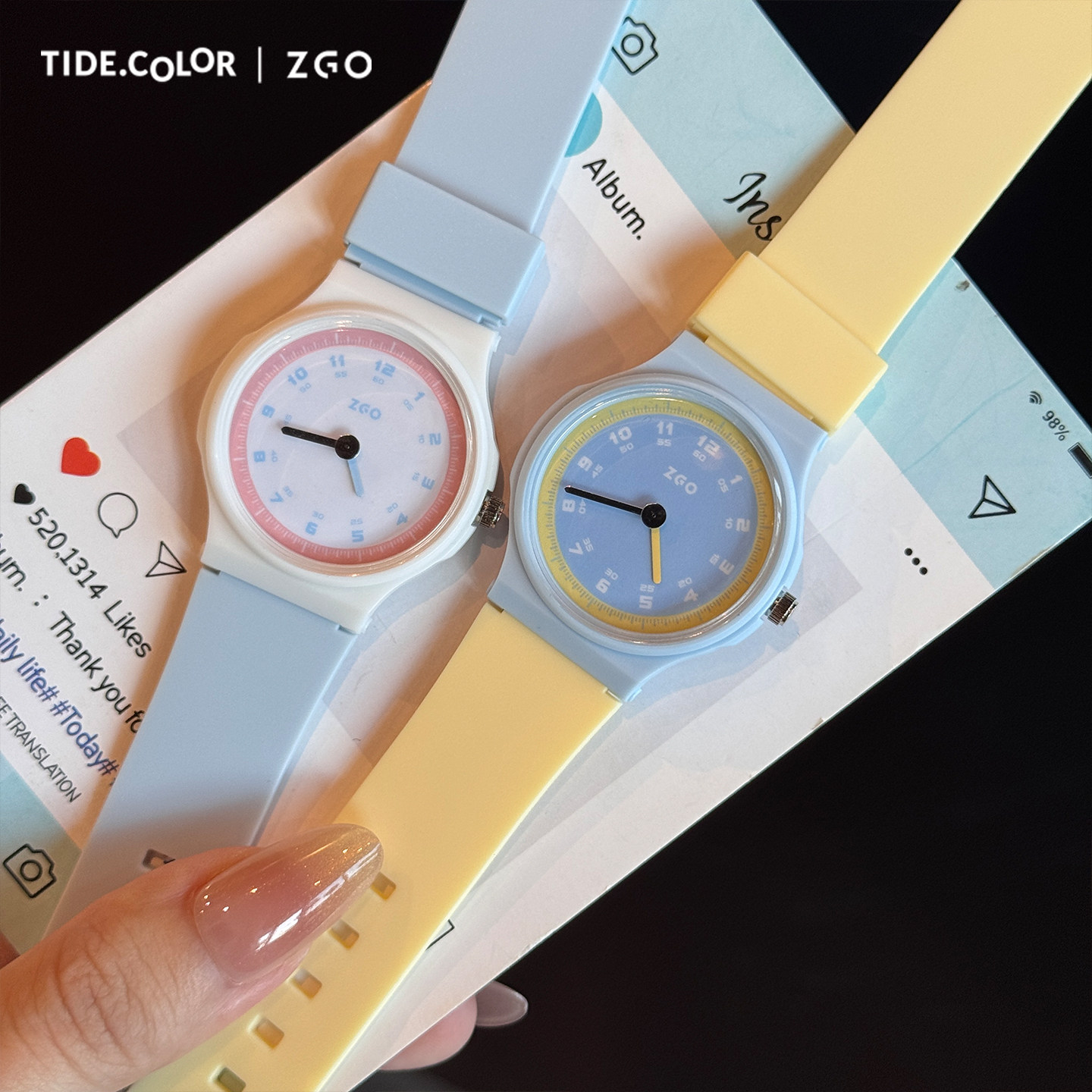 tide color正港zgo学生儿童手表女孩初高中考试专用ins简约石英表