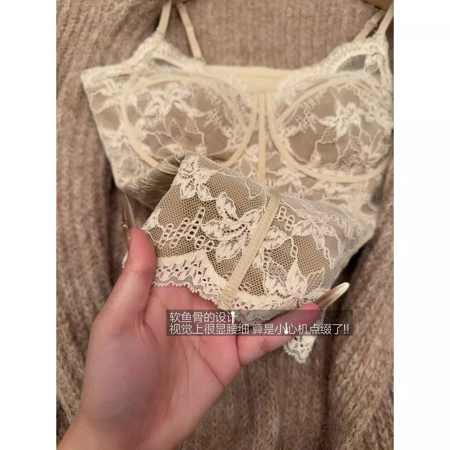 皮草内搭蕾丝加绒吊带背心女带胸垫保暖打底V领美背内衣鱼骨胸衣