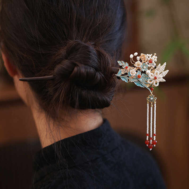 古风花朵发簪2026新款高端步摇木簪盘头发簪子新中式清冷汉服发饰