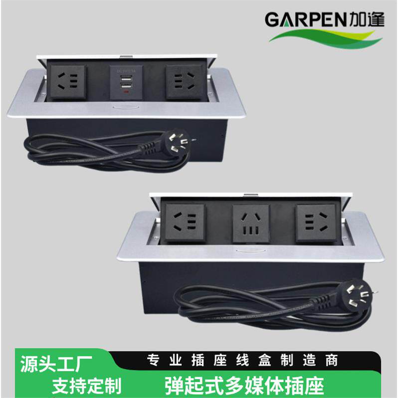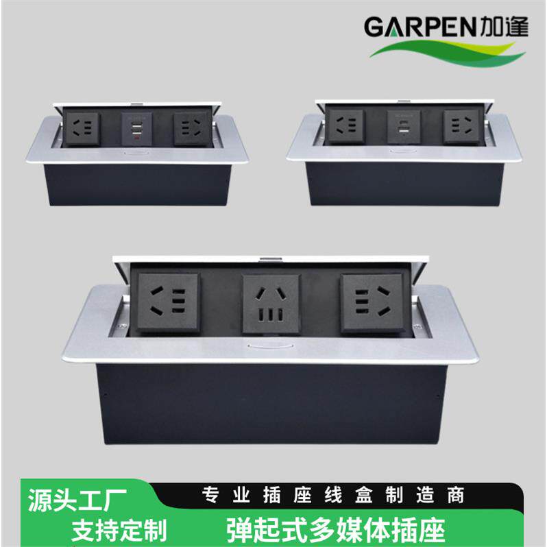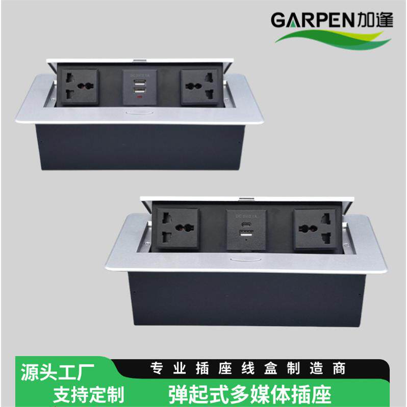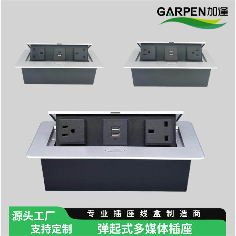 弹起式桌面插座1410多功能线盒欧标美标英标嵌入式USBA+C充电欧规