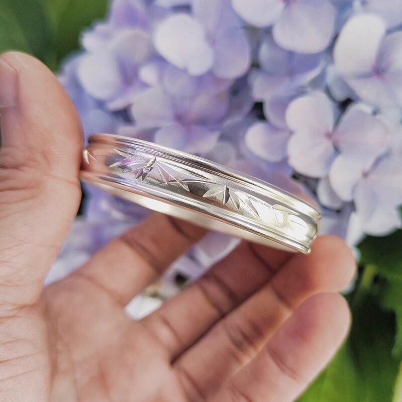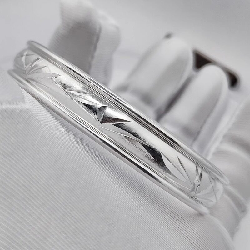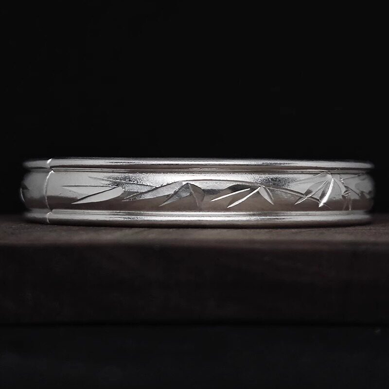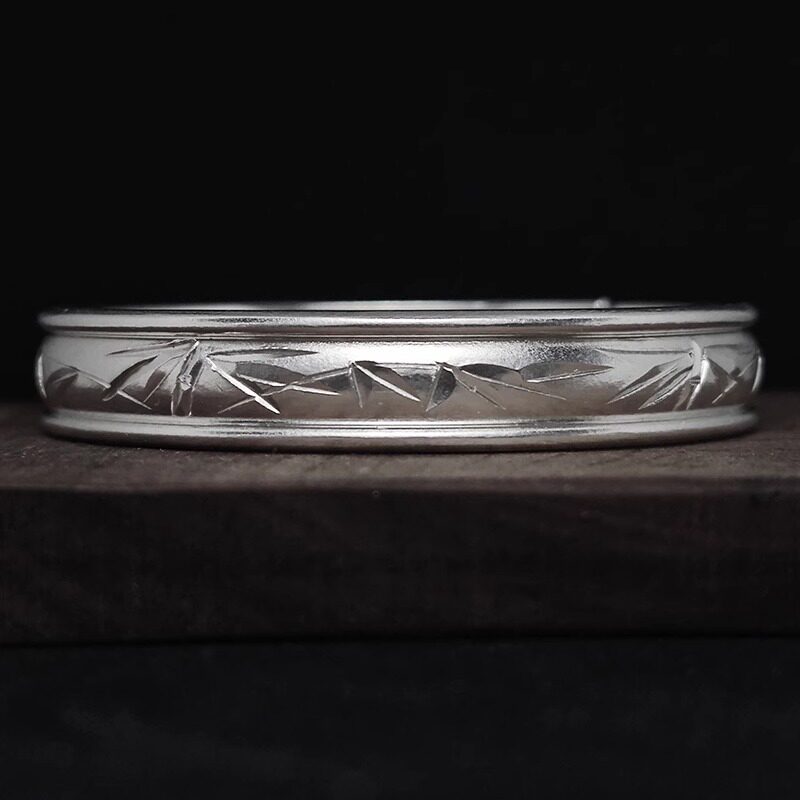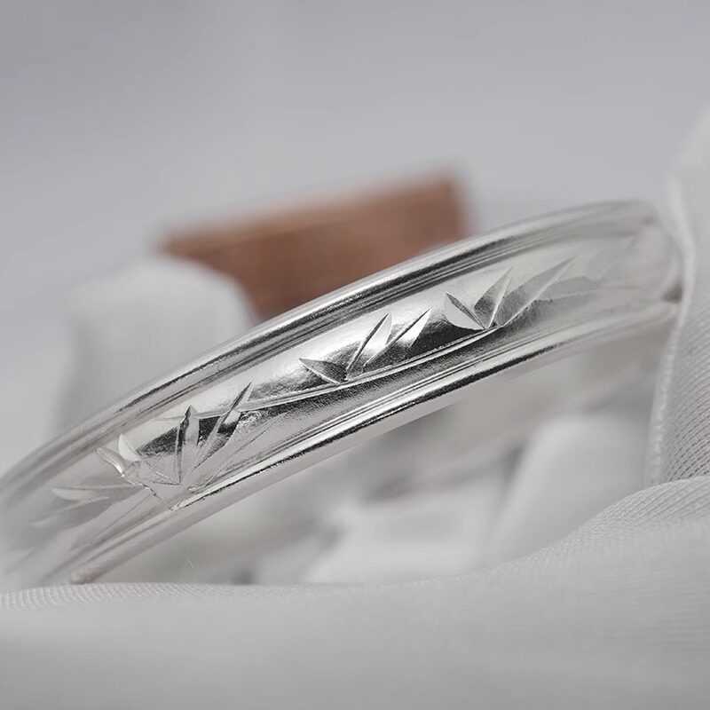 简刻金匠手工雕刻复古老银斜刻999足银刻字纯银轨道竹子开口手镯