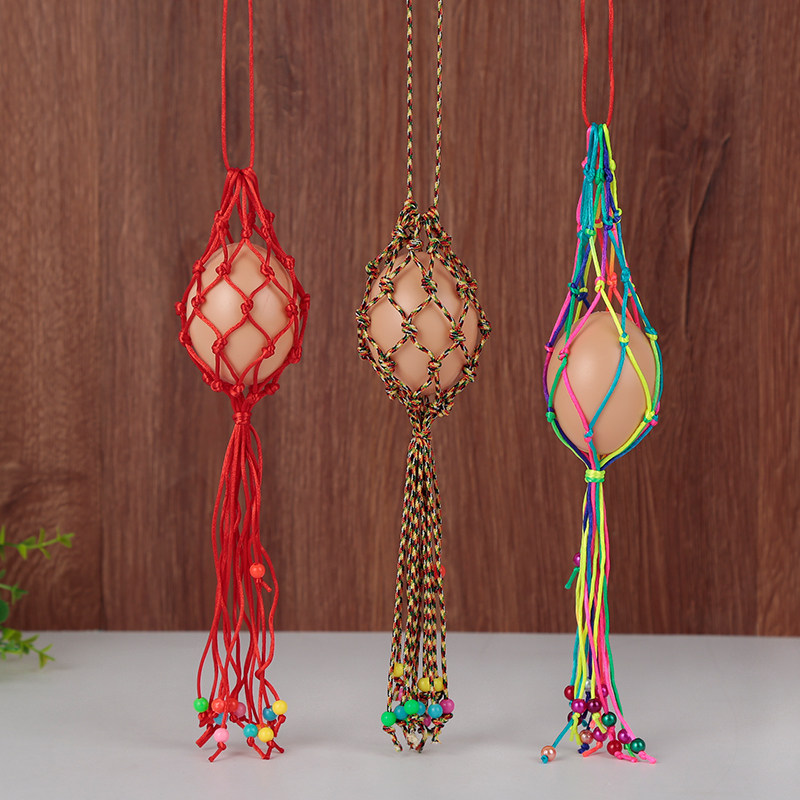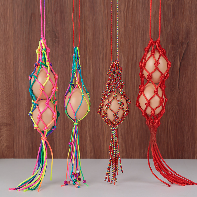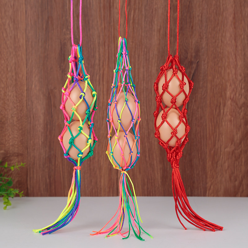 端午节幼儿园儿童蛋兜蛋袋手工编织成品五彩鸡蛋鸭蛋挂脖蛋网立夏
