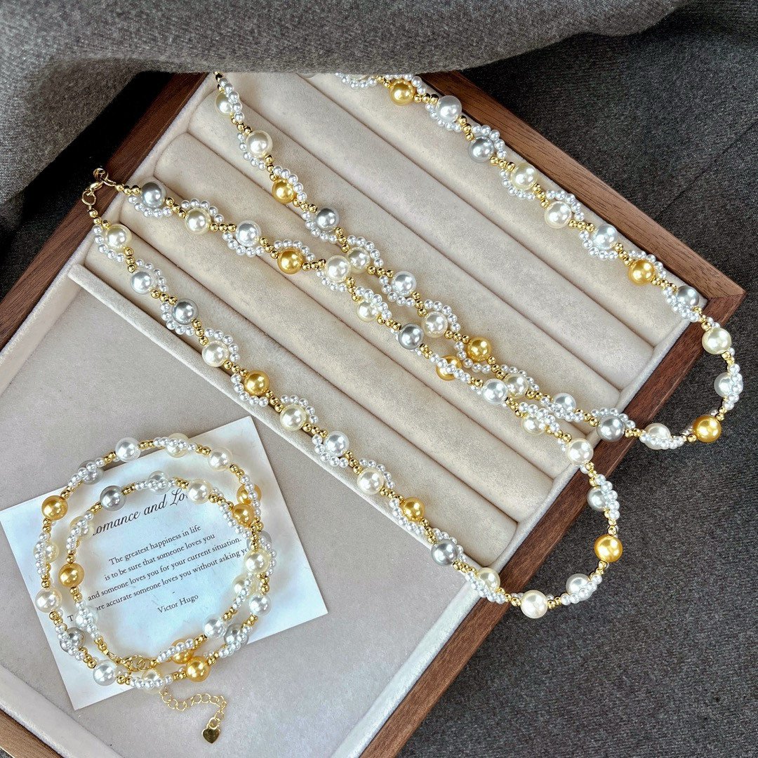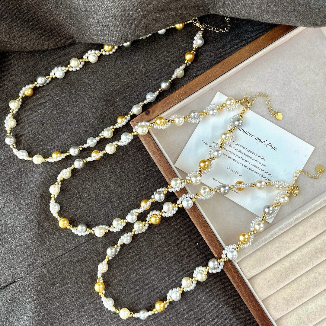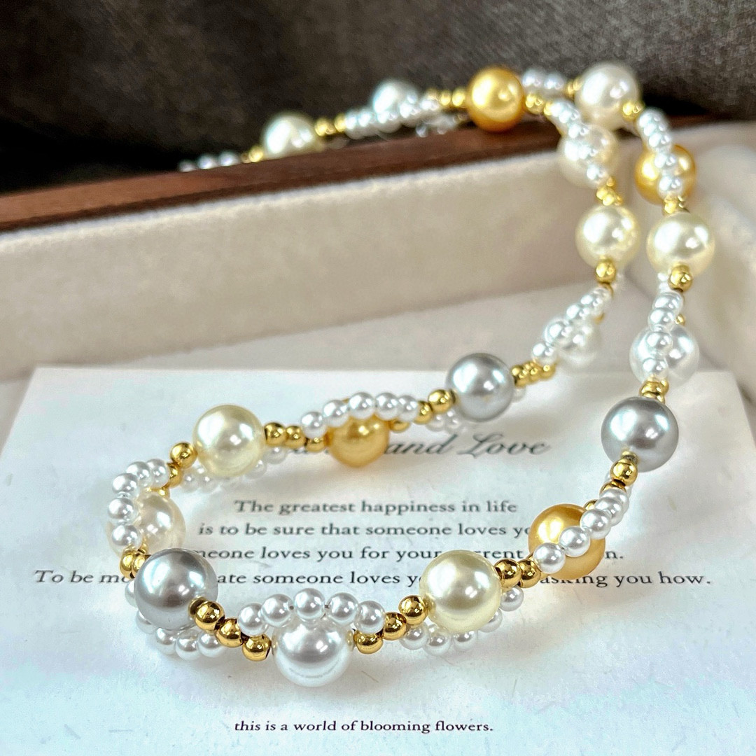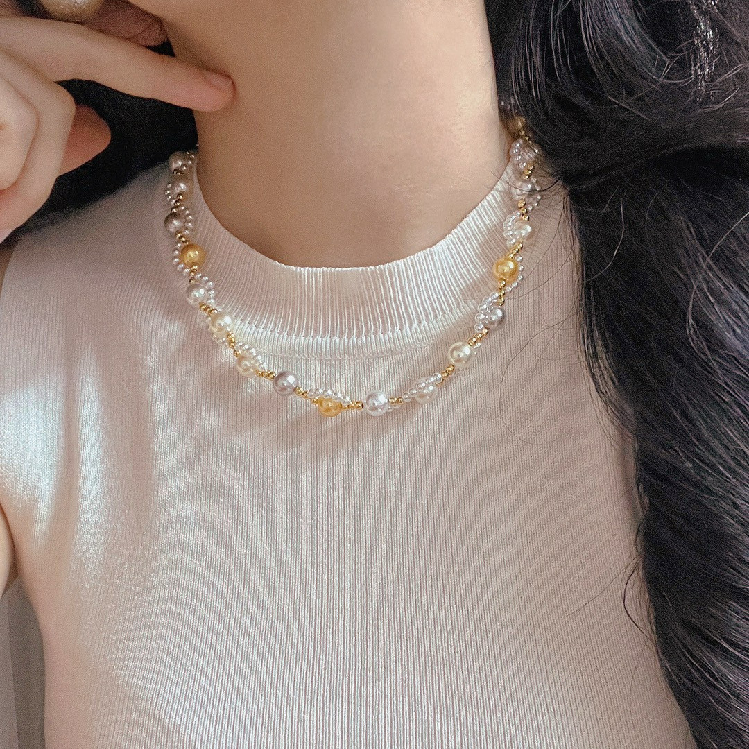 原创手作编织款法式复古人造水晶珍珠项链精致双层高级感锁骨链