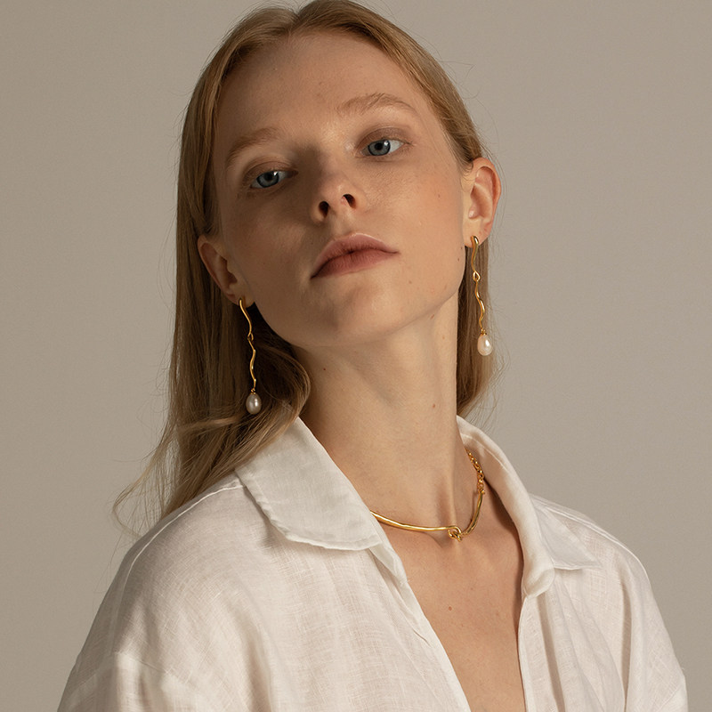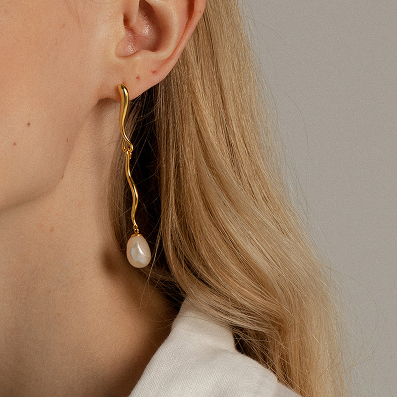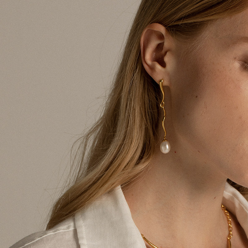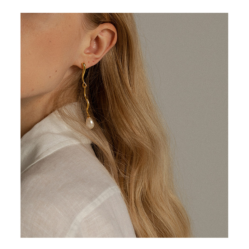 Unfolds水滴天然珍珠长款耳环女夏小众设计感高级冷性风气质耳饰