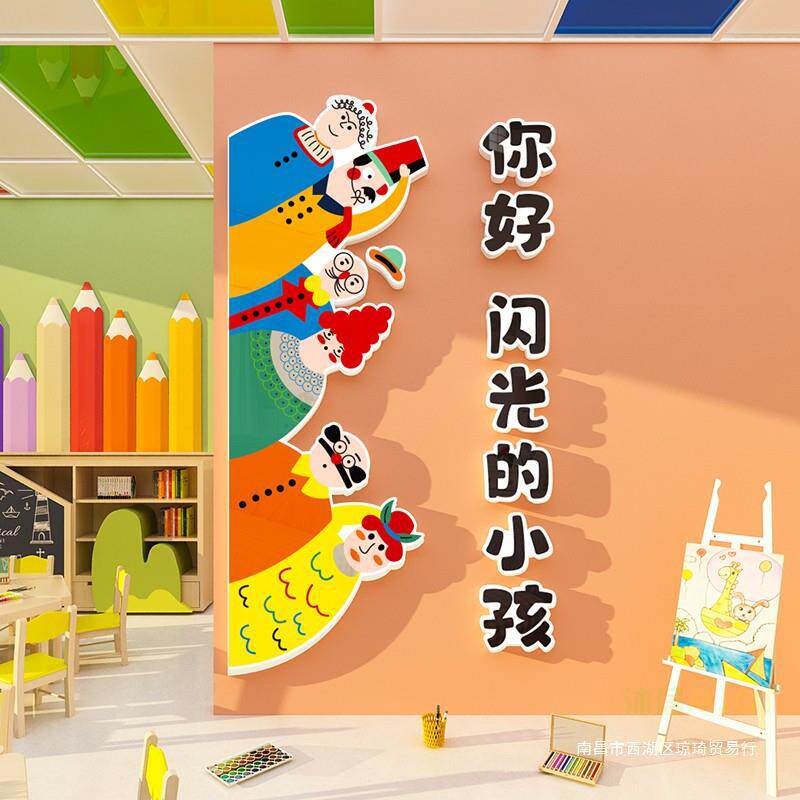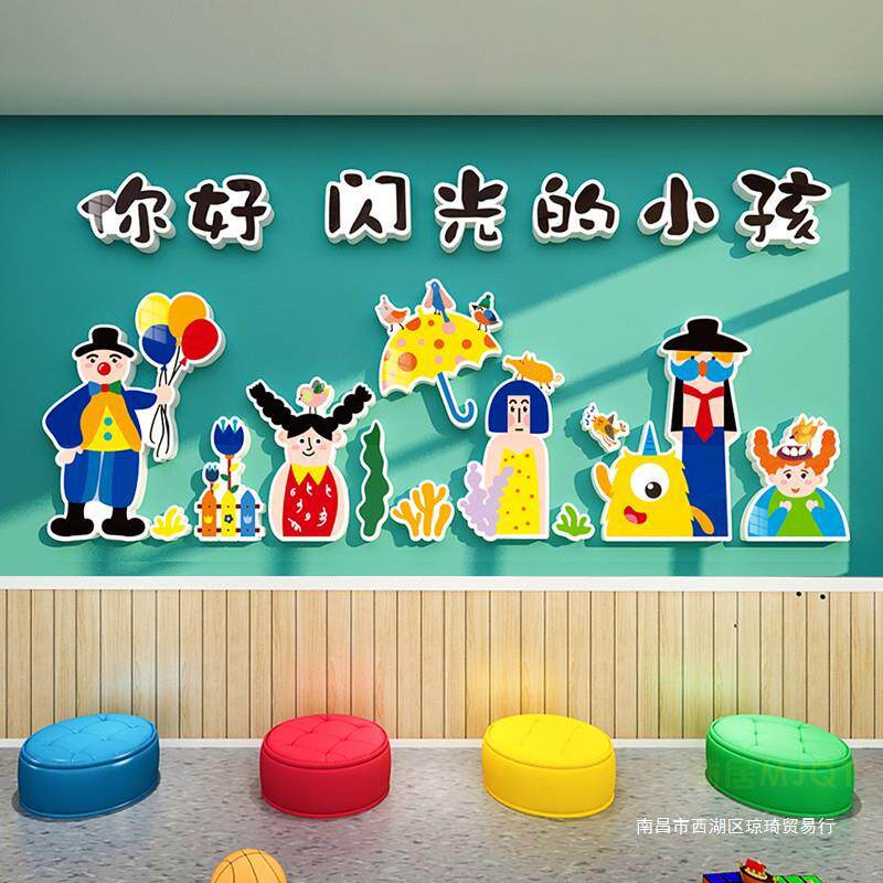 幼儿园墙面装饰画布置美术教室走廊文化主题墙贴你好闪光小孩环创