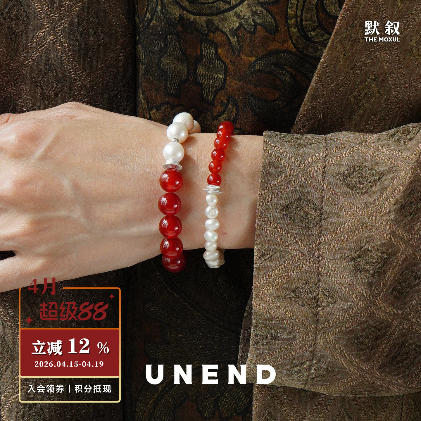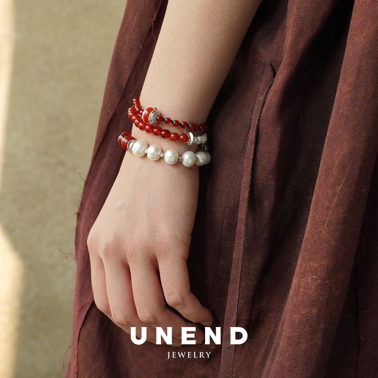 UNEND止续 纯银红玛瑙珍珠流霞Sunset手链 设计师银饰新中式 默叙