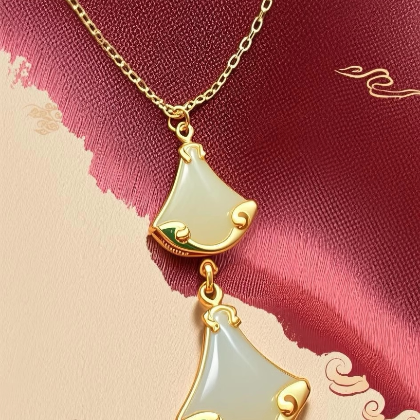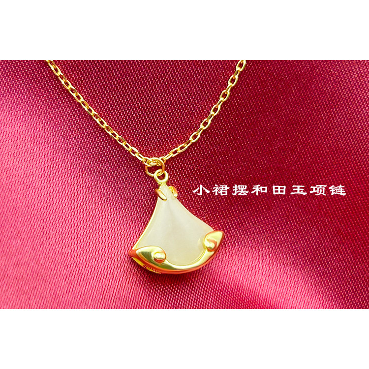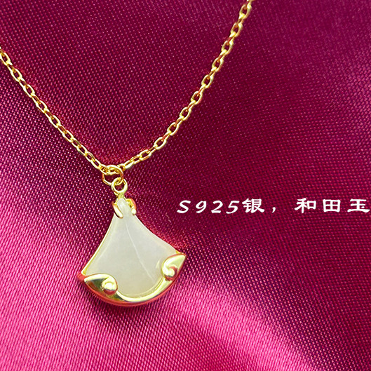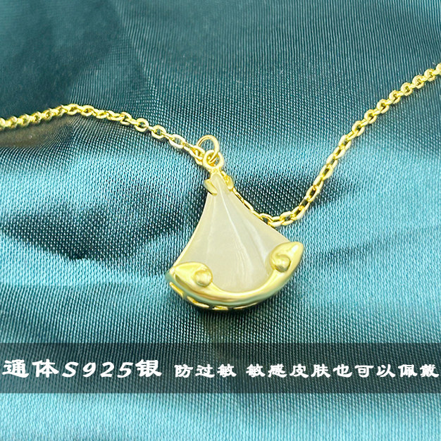 S925纯银天然和田玉项链新中式小裙摆国潮高级感扇形吊坠锁骨链女