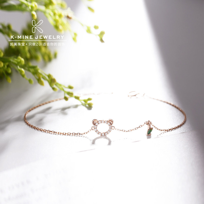 18K玫瑰金钻石手链可爱熊猫手链小众设计女朋友闺蜜生日礼物圣诞