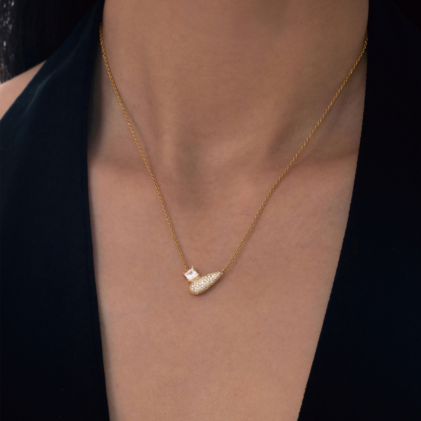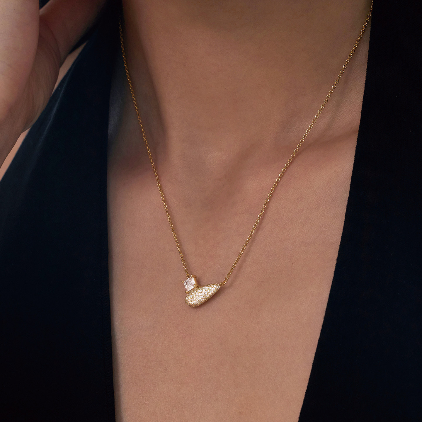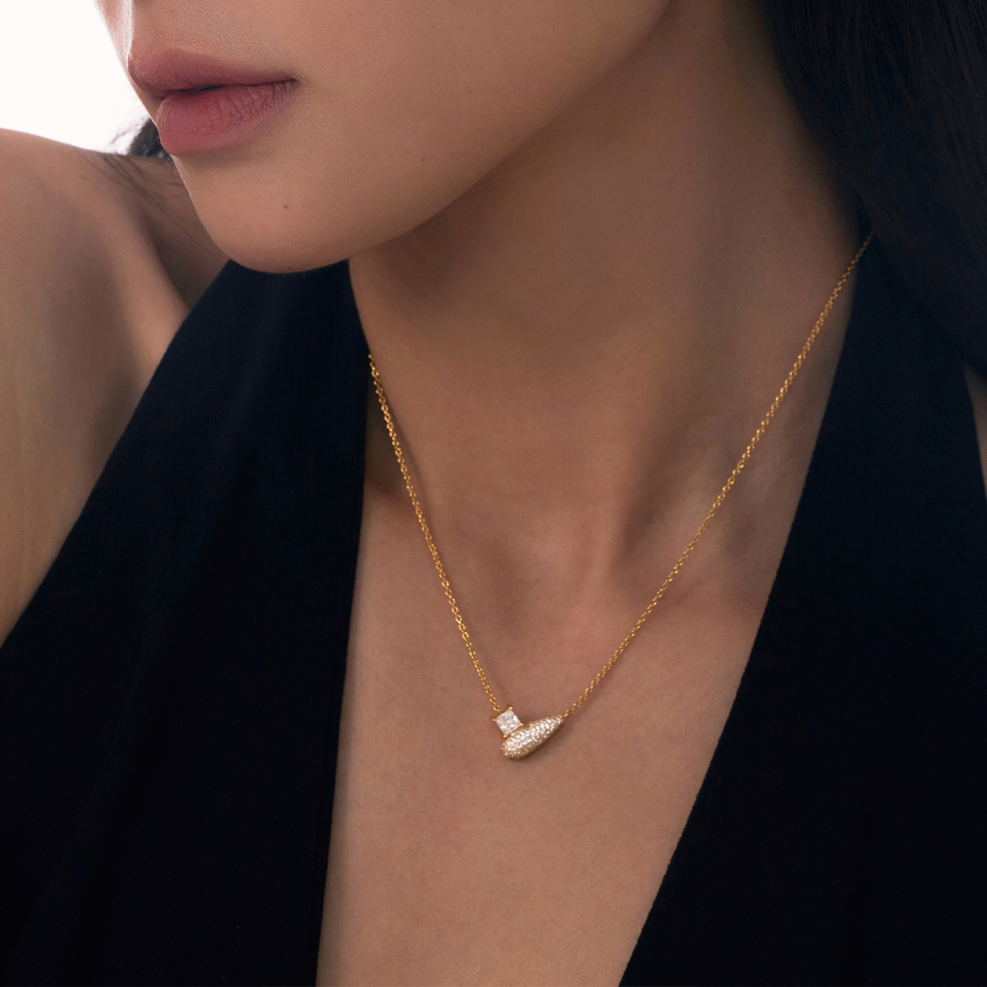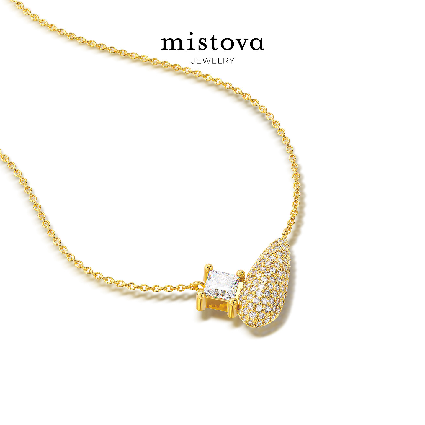 Mistova气质精致高级感小众独特s925银锁骨链女金色星垂方石项链