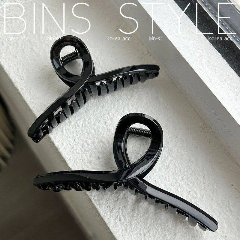 韩式高级感亮黑色抓夹发量多后脑勺盘发鲨鱼夹子简约复古高级发饰