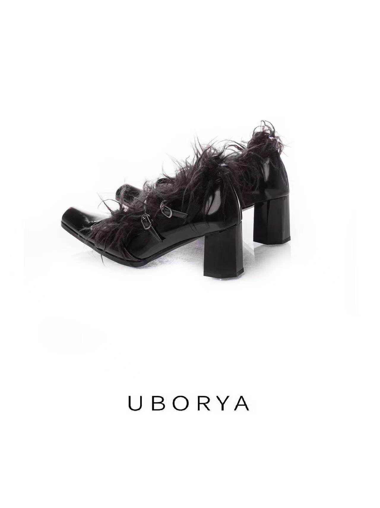 UBORYA设计师品牌/西游妖魔·黑风怪/荆棘芭蕾舞女嬉皮风毛毛女鞋