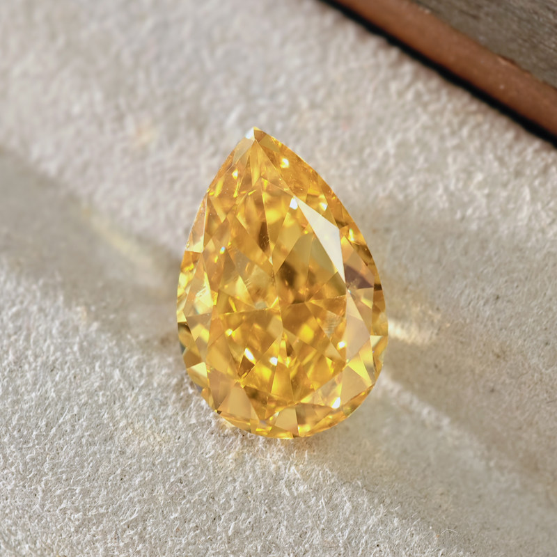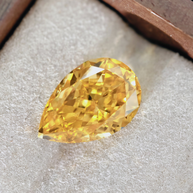 黄钻彩宝雷迪恩冰花切水滴梨形彩宝裸石未镶嵌宝石可定制戒指代镶