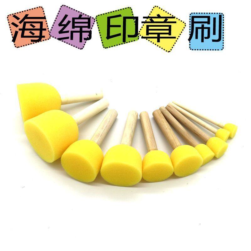 圆形海绵印章海绵刷蘑菇头幼儿园绘画涂鸦拓印diy手工美术工具包