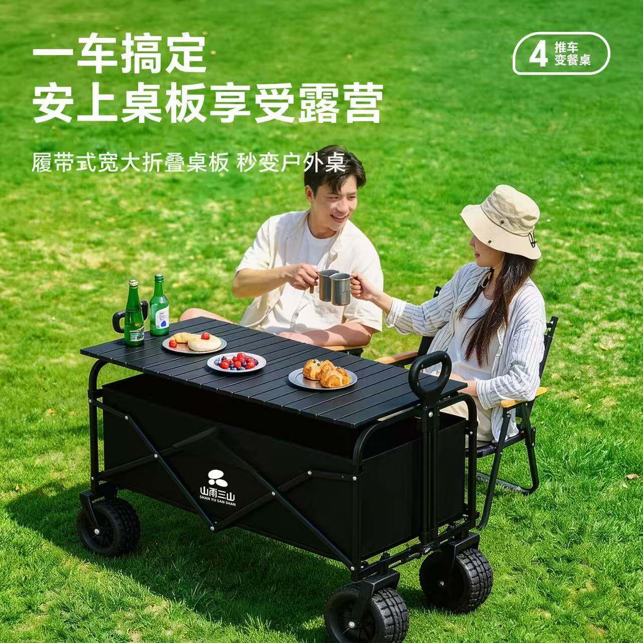 户外推车露营小推车可折叠便携式营地车大号摆摊野餐手拉车旅行车