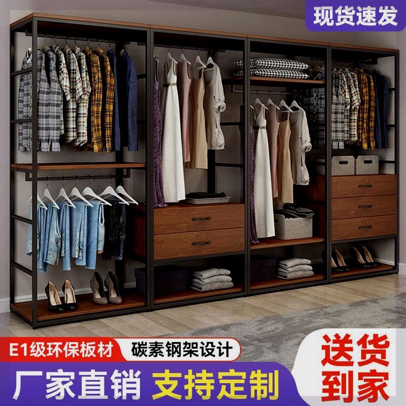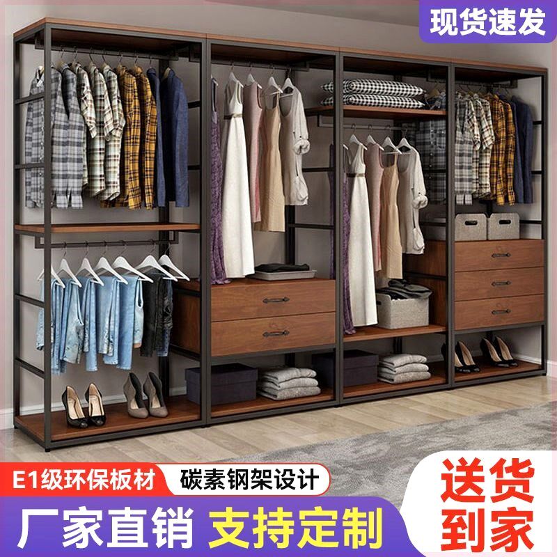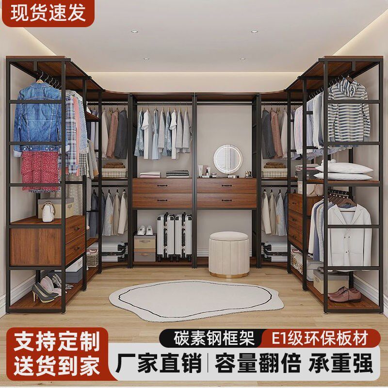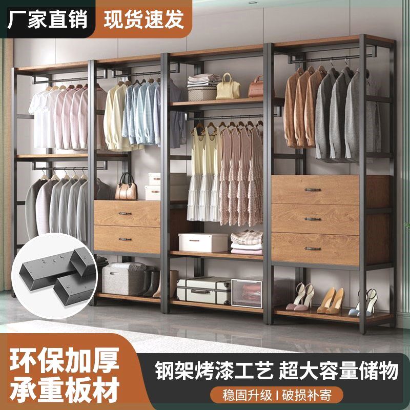 步入式衣帽架家用卧室带抽屉收纳定制组合落地衣架双层开放式衣柜