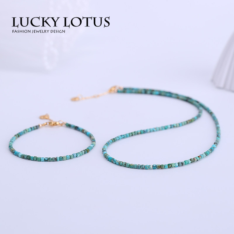 LUCKYLOTUS珠宝首饰新中式国风天然绿松石女手链小众项链方糖设计