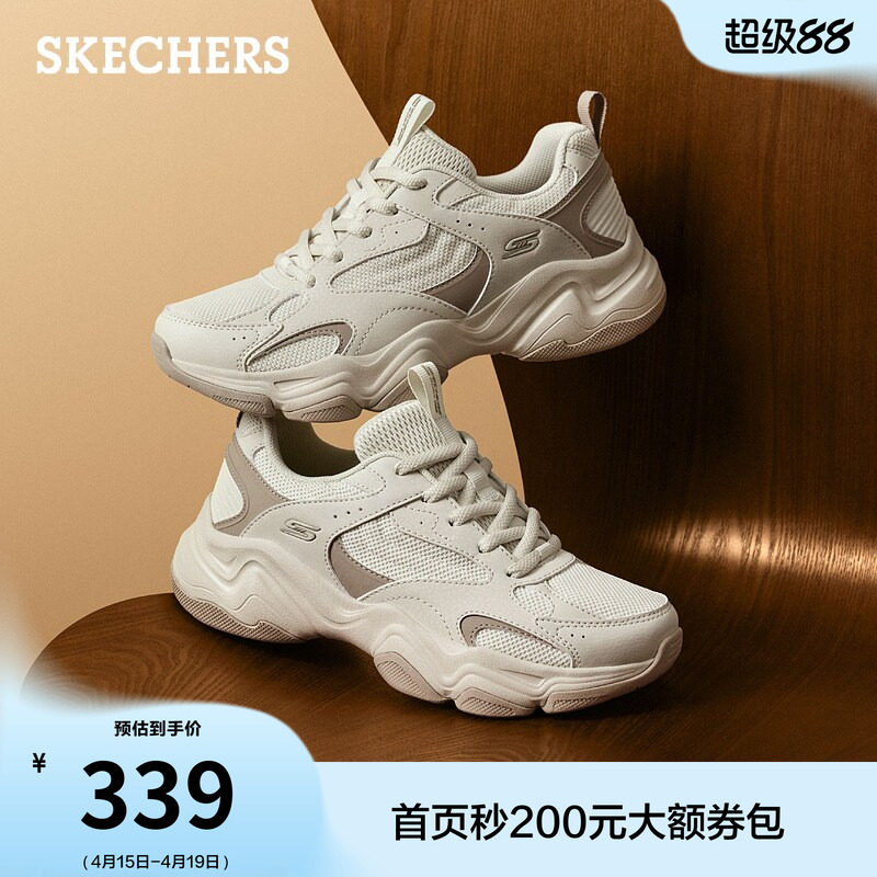 蔡文静同款|斯凯奇泡芙鞋女款厚底老爹鞋闪穿休闲鞋透气运动鞋女