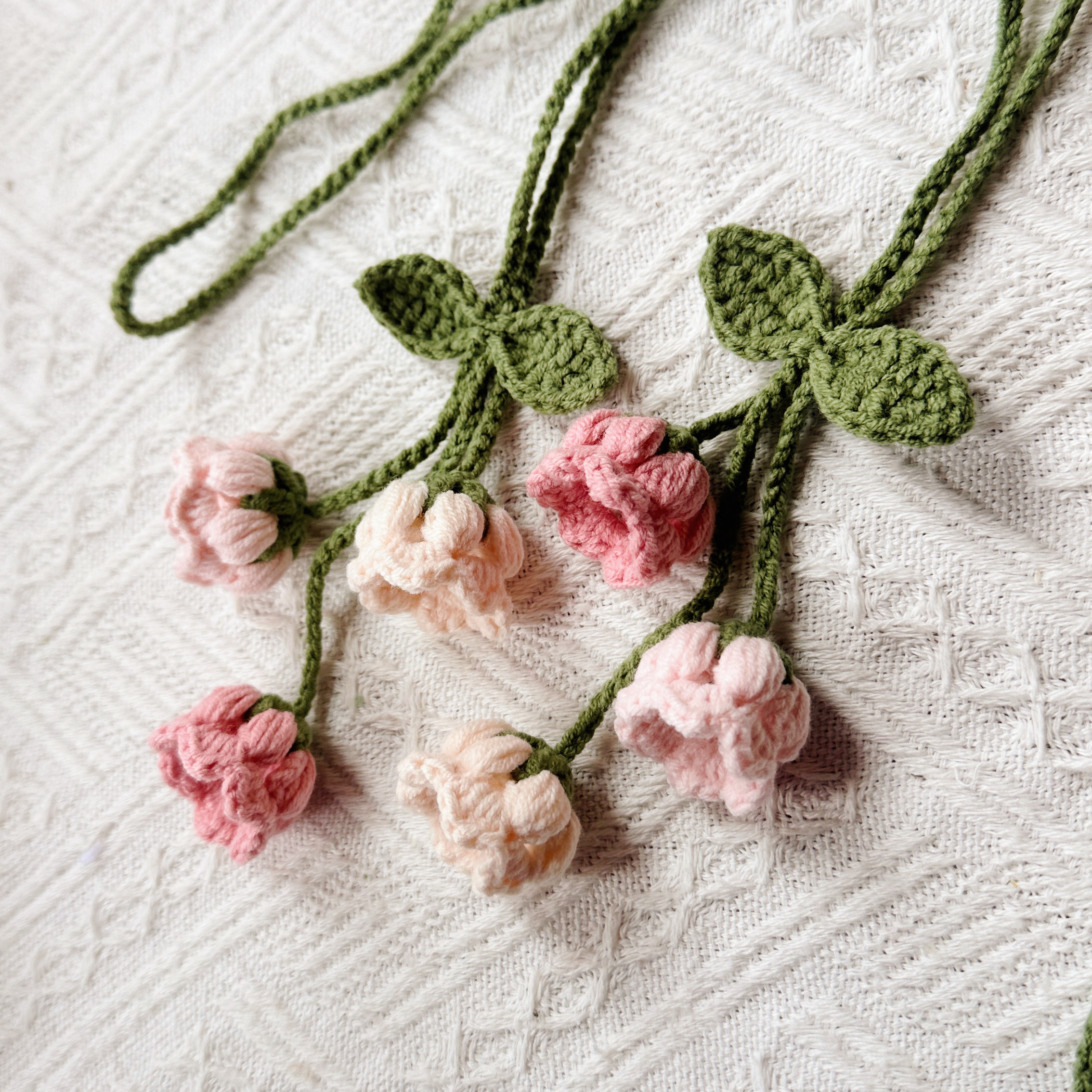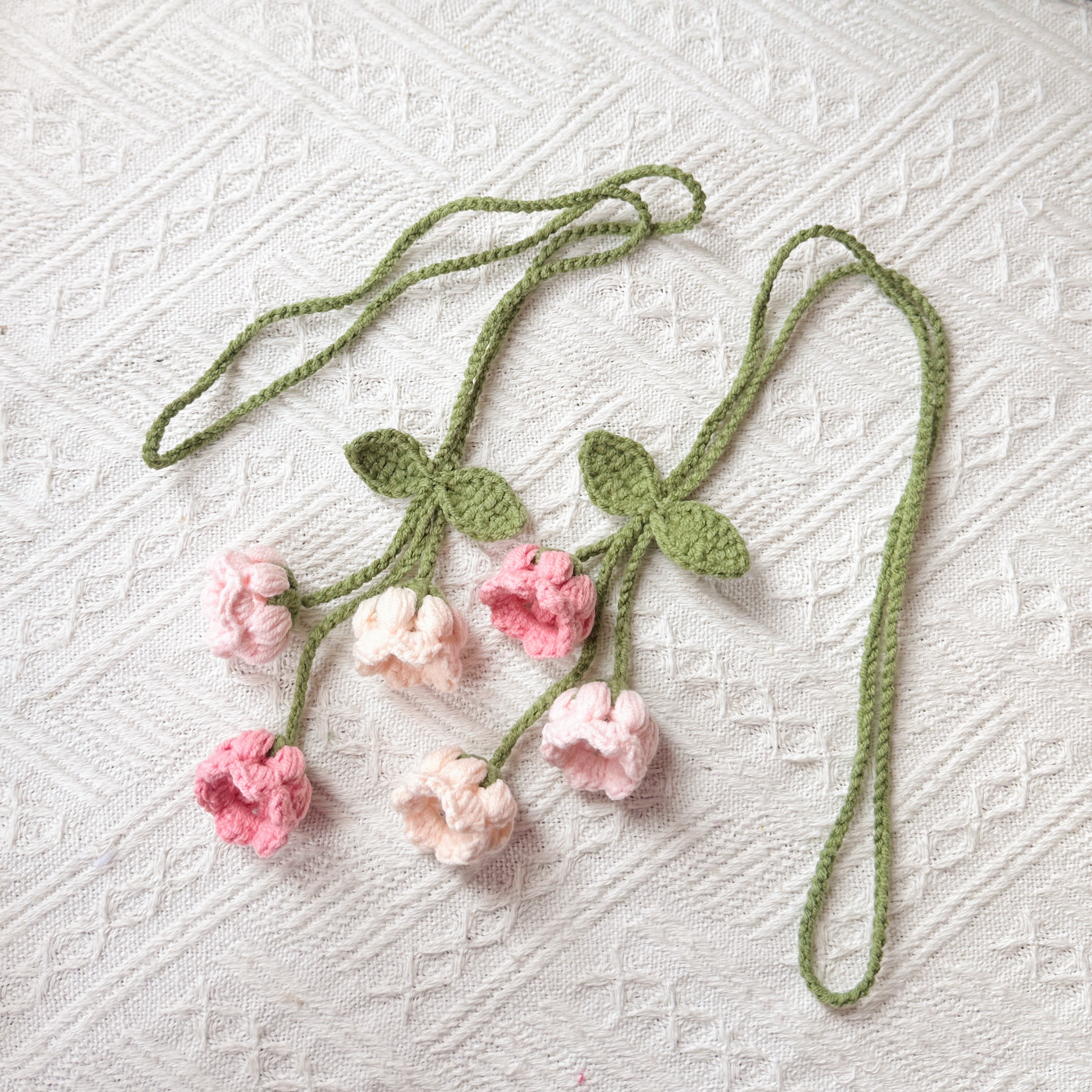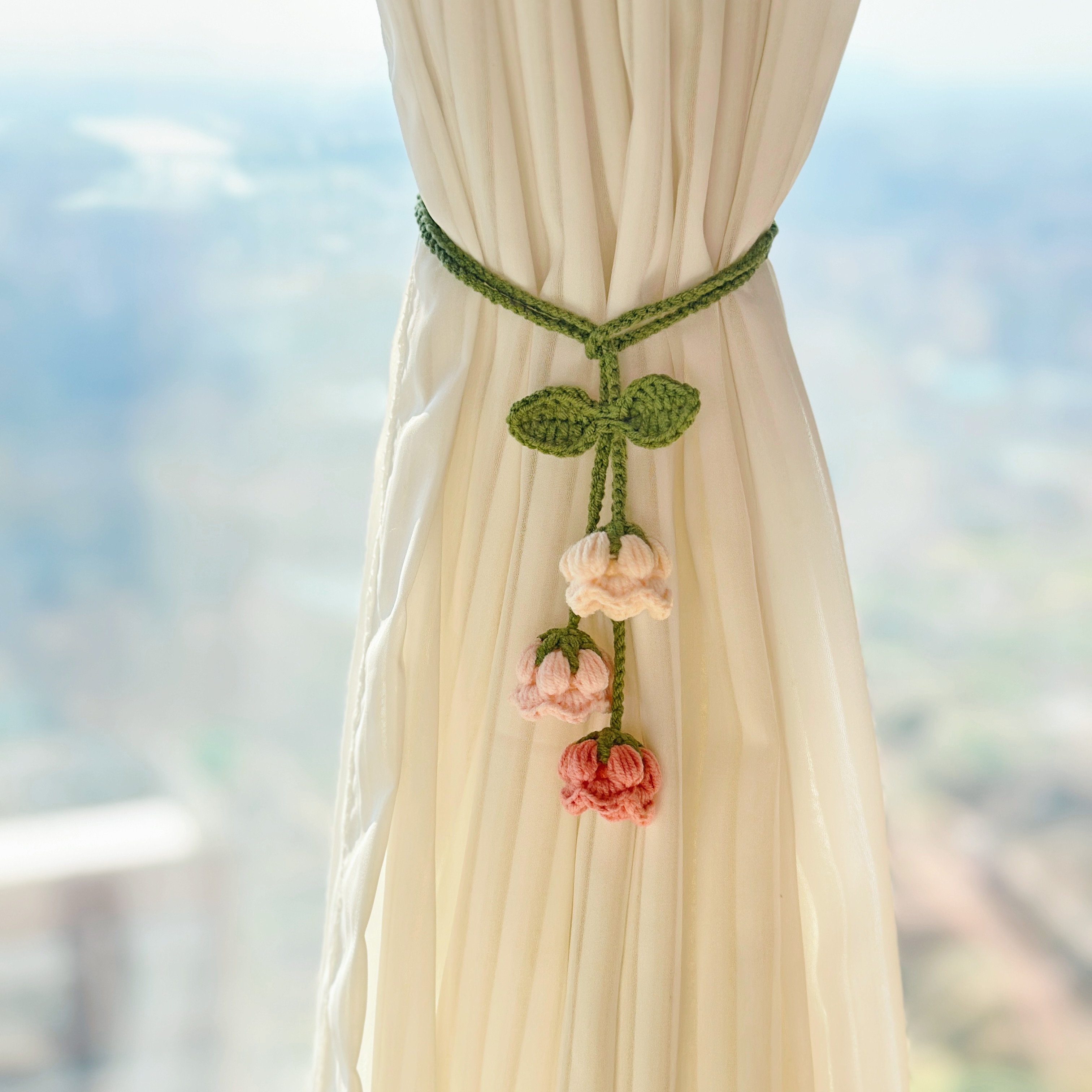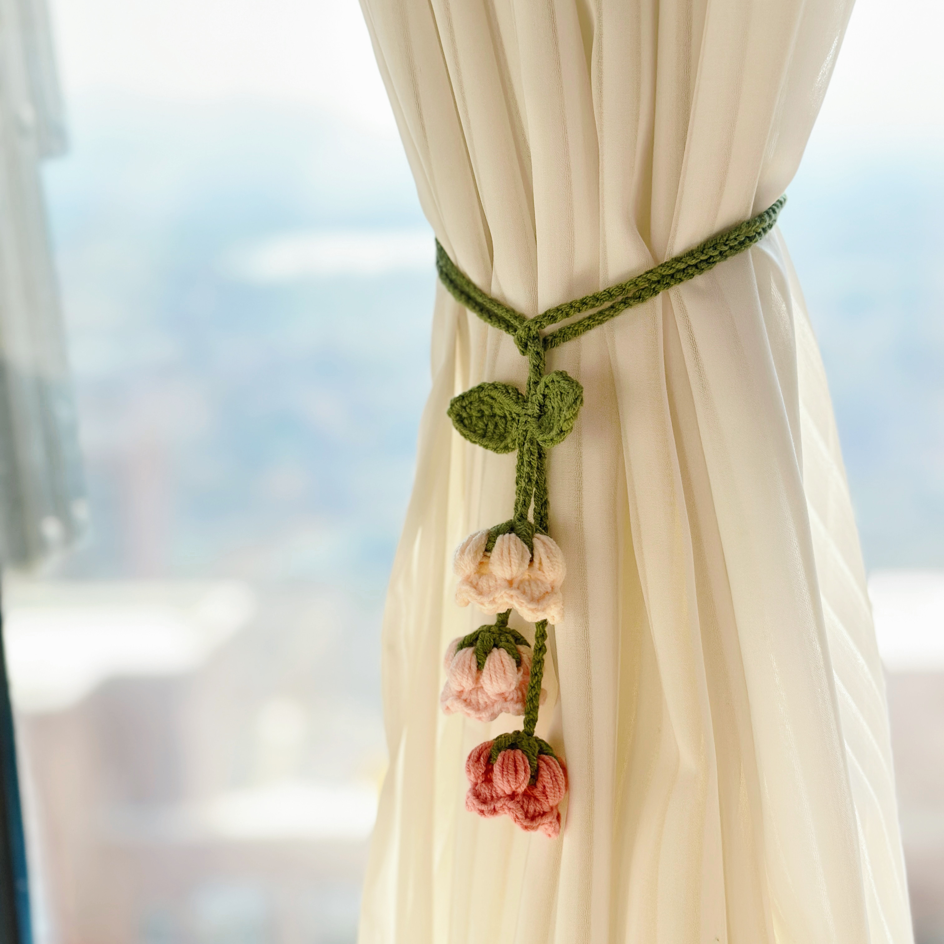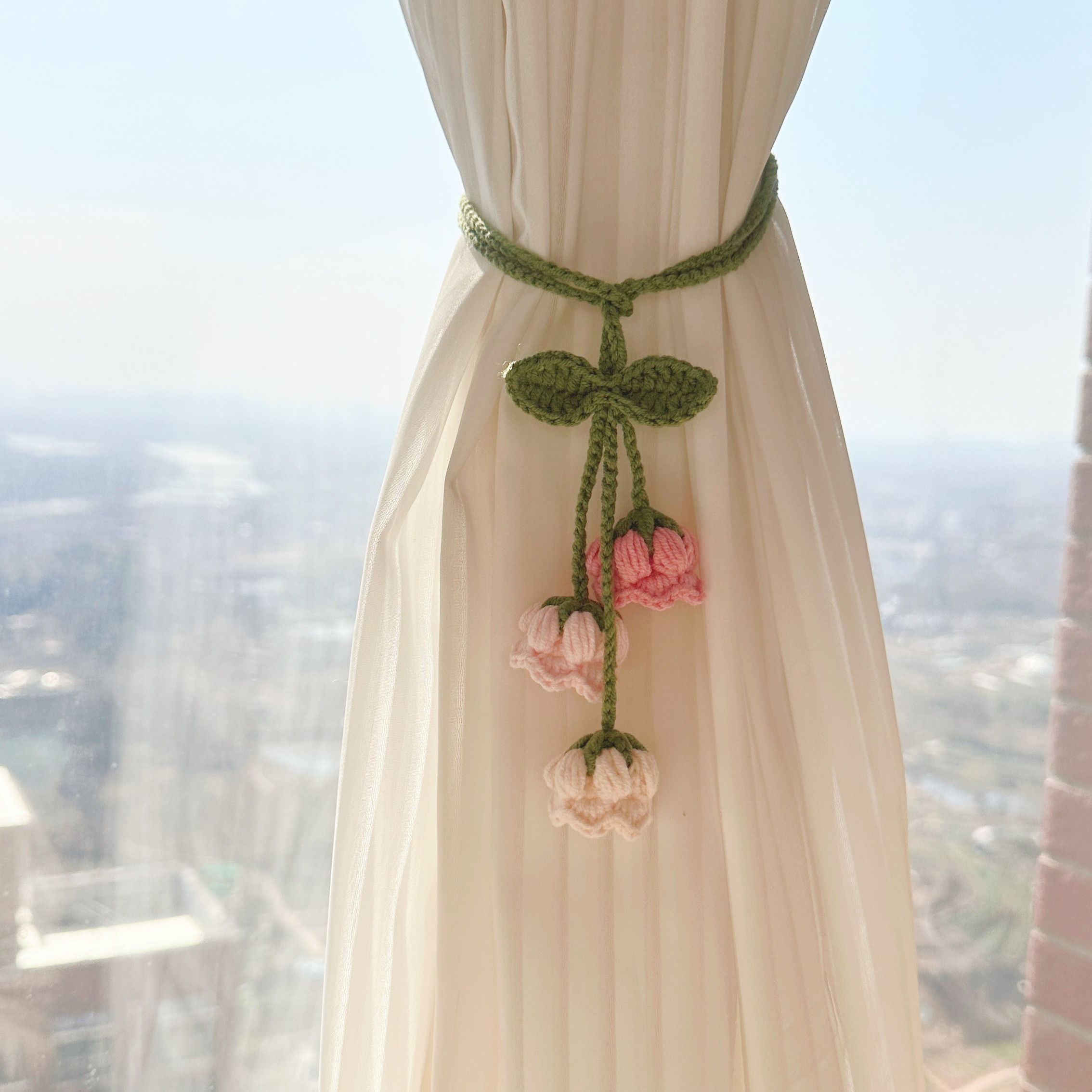 成品手工钩织毛线铃兰花可爱迷你窗帘装饰绑带送女友闺蜜生日礼物