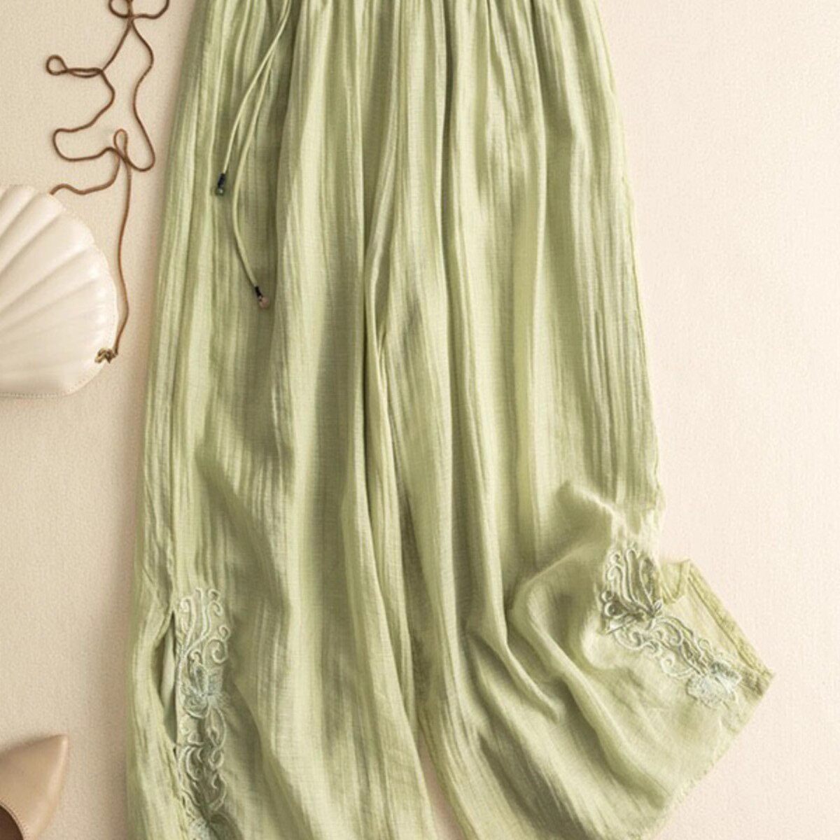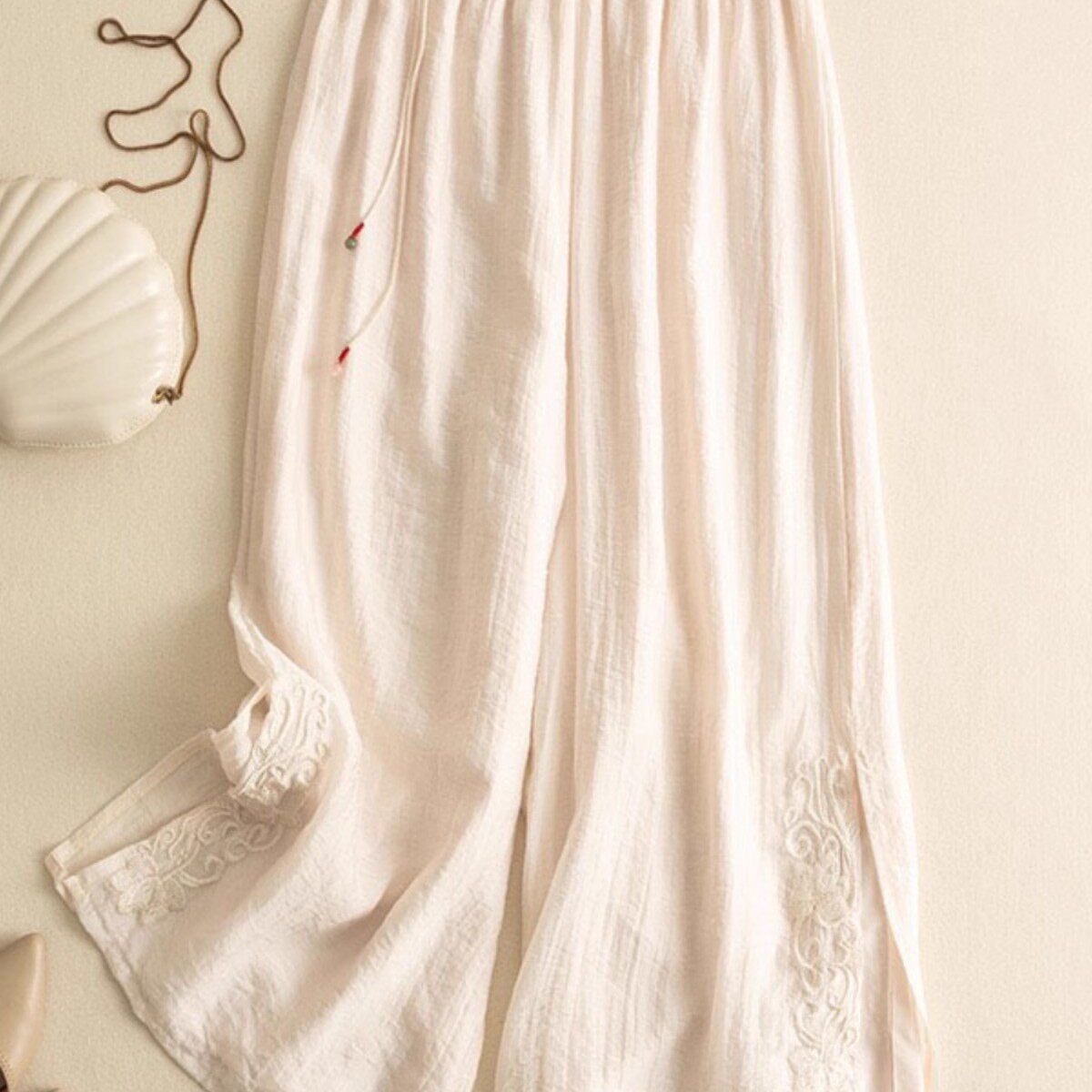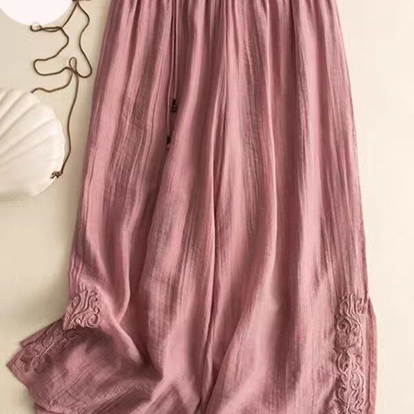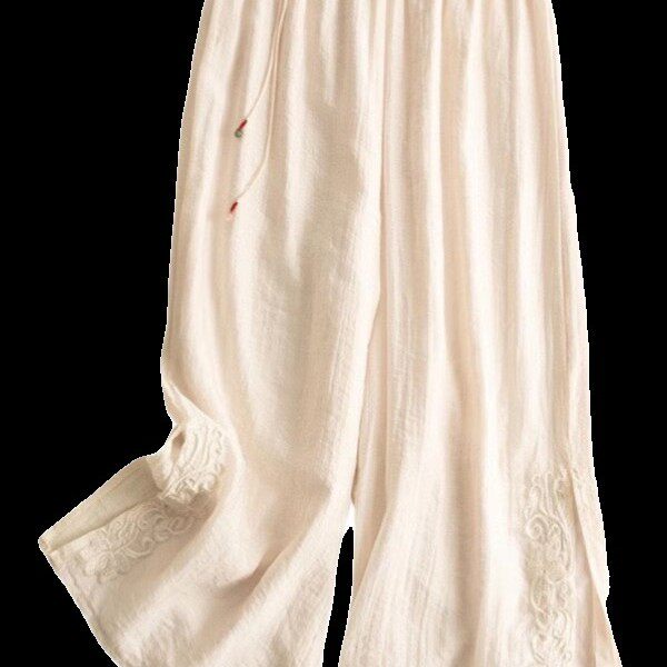 2025夏季中国风复古中式唐装裤子汉元素宽松大码刺绣棉麻阔腿裤女