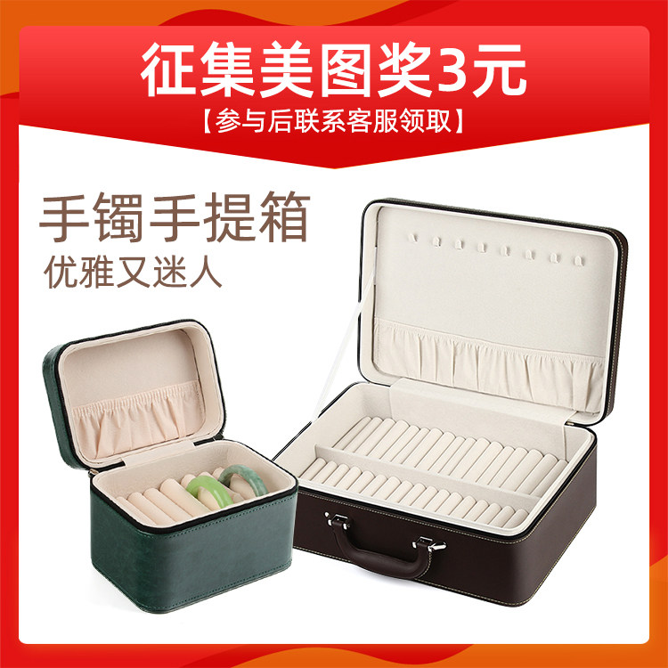 高档手镯收纳盒30位手镯盒玉器翡翠手提箱皮质展示箱玉镯子收纳箱