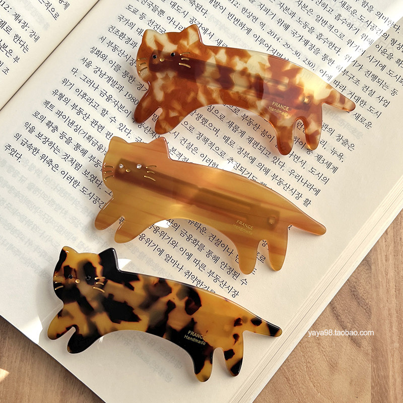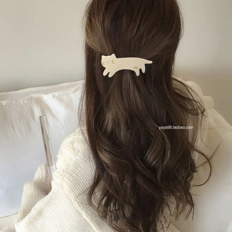 韩国博主同款France金标可爱猫咪弹簧夹百搭减龄公主头发夹顶夹子