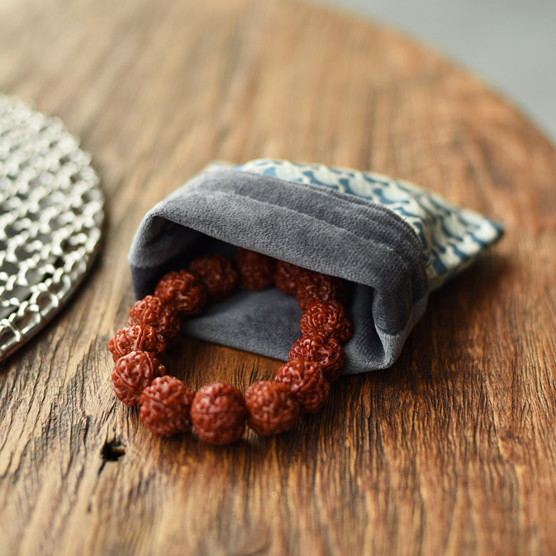 高档束口抽绳文玩收纳布袋子首饰手镯珠宝包装袋双层主人杯茶杯袋