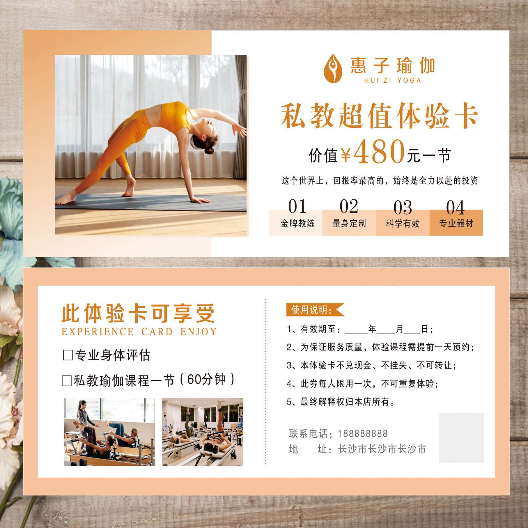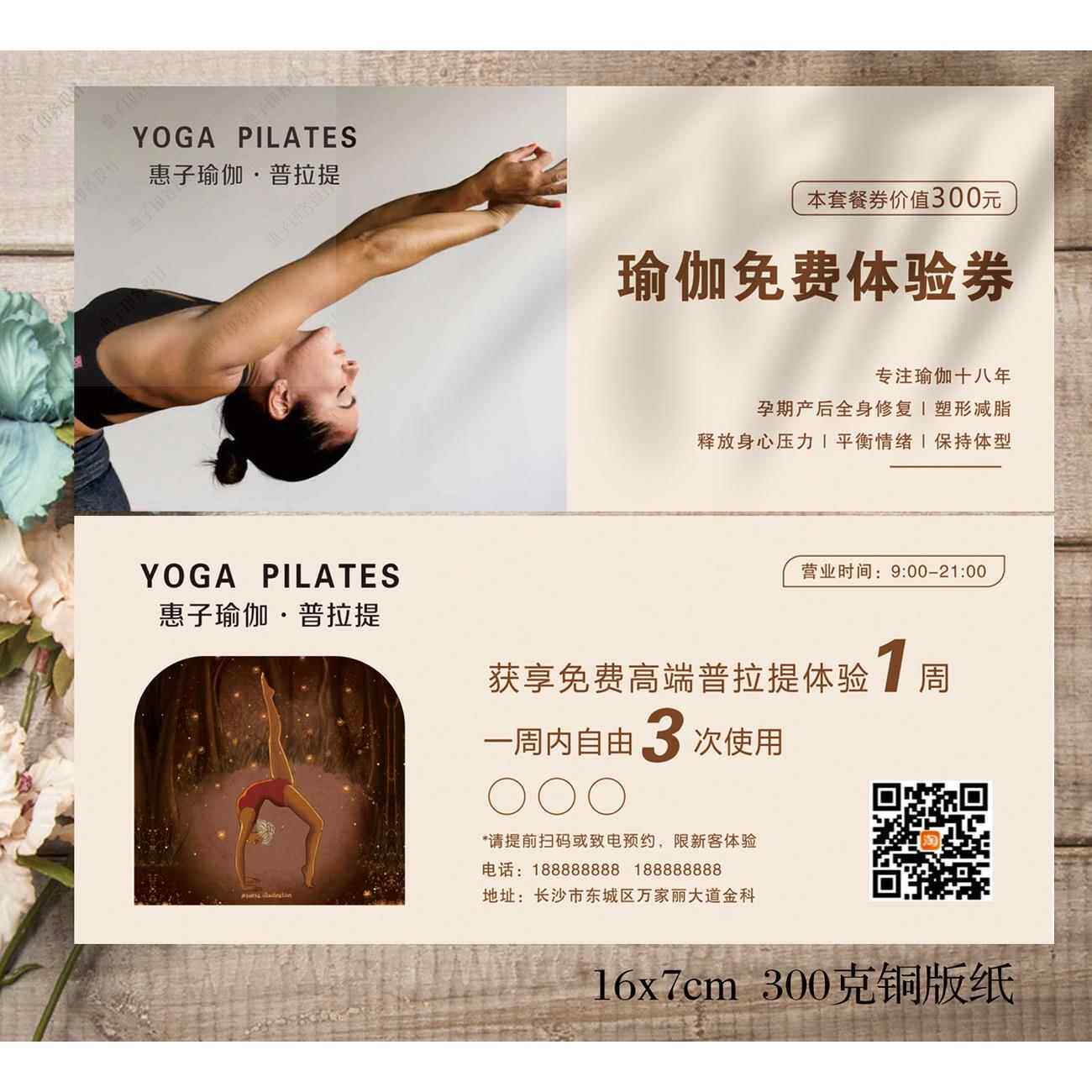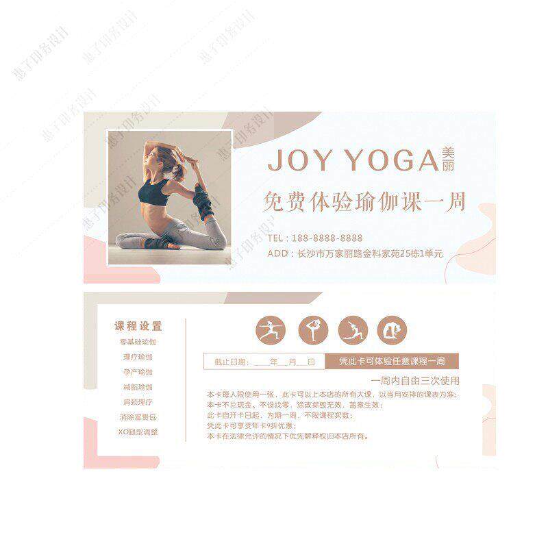 瑜伽广告体验卡定制健身房体验卡普拉提周月卡优惠券代金券设计