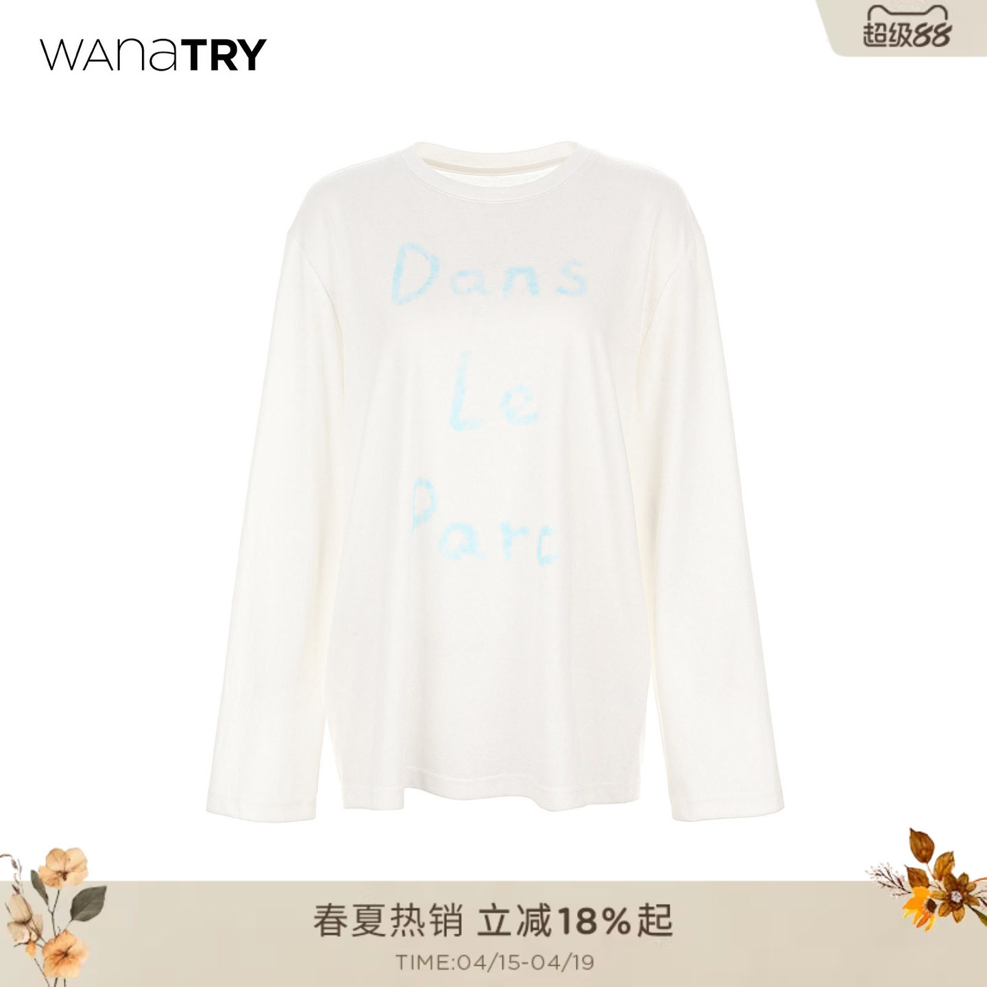 wana try"在公园里"手写晕染字母时髦T恤春季新款休闲百搭长袖女