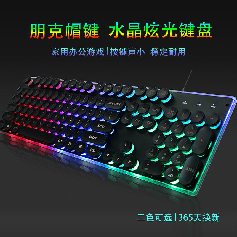 零点之约圆形机械手感键盘悬浮金属彩色背光有线USB吃鸡游戏办公