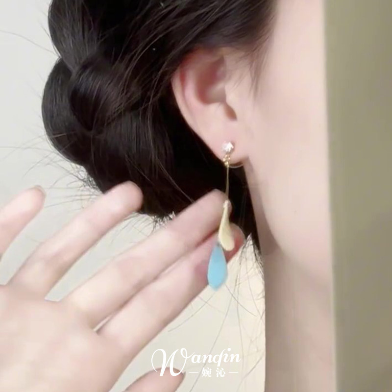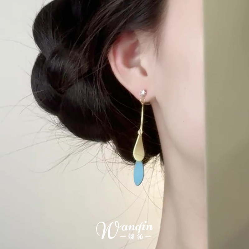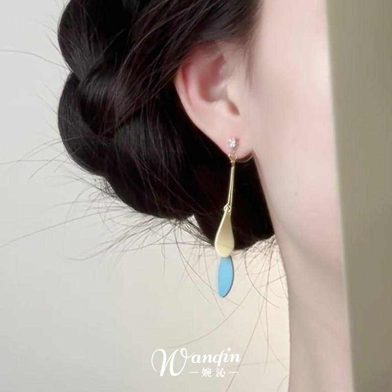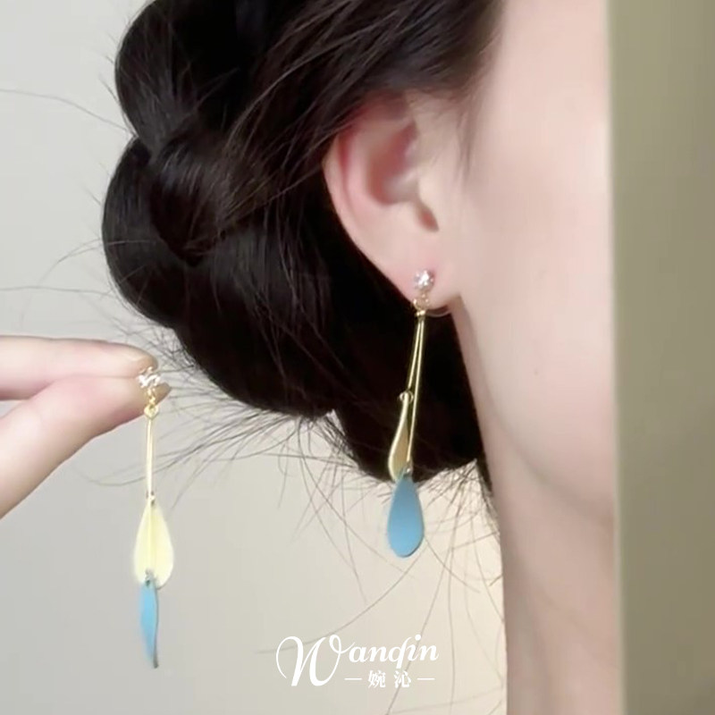 超仙气撞色叶子流苏耳钉灵动气质百搭耳夹小众高级感耳饰优雅古风