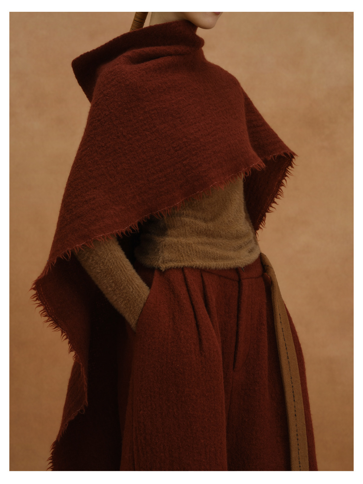 【MORIN KHUUR设计师品牌】红色羊毛毛呢围巾披肩