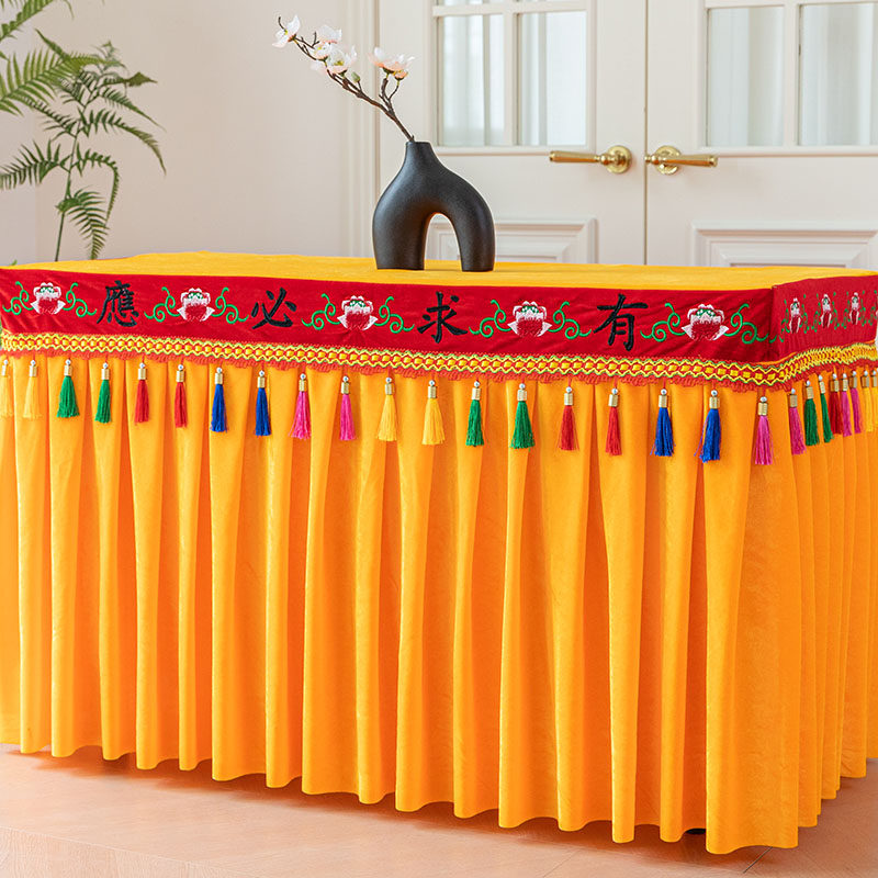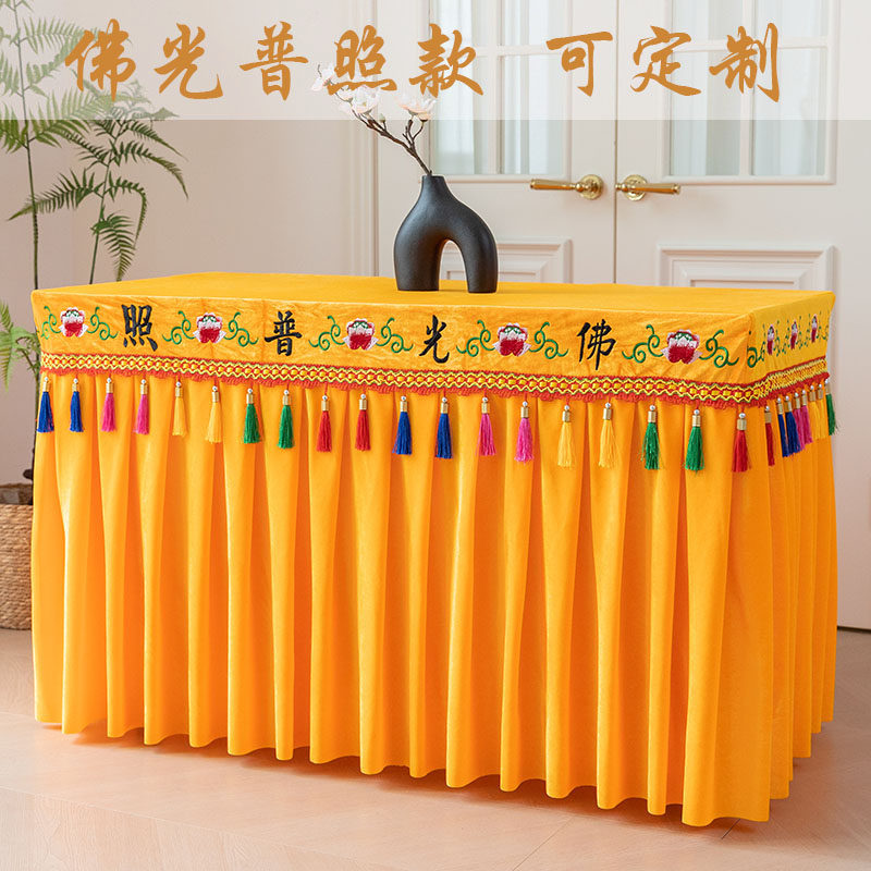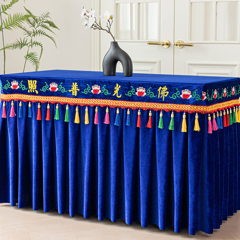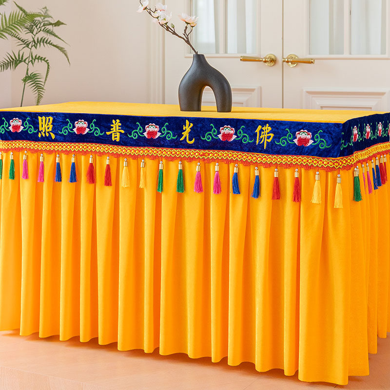 佛光普照有求必应莲花刺绣供桌布佛台布加厚金丝绒定制桌裙桌围