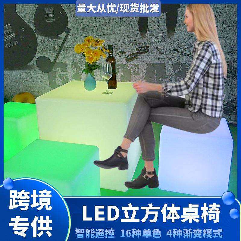 户酒外发光家具正方形椅凳子KTV吧方桌灯块LED发2020光立子方体桌