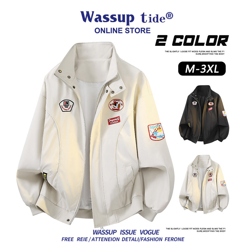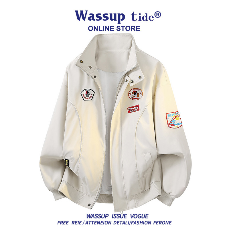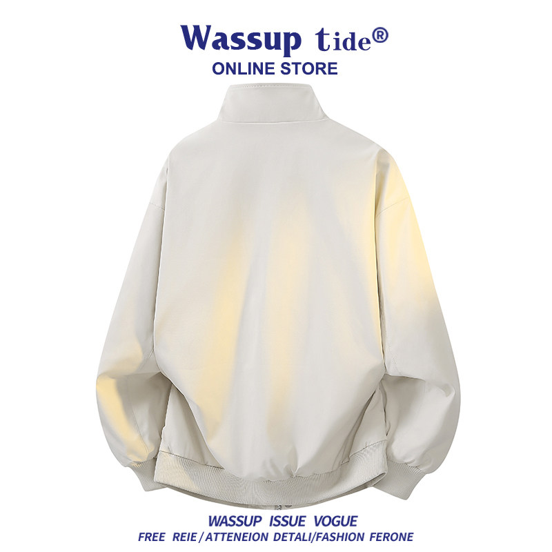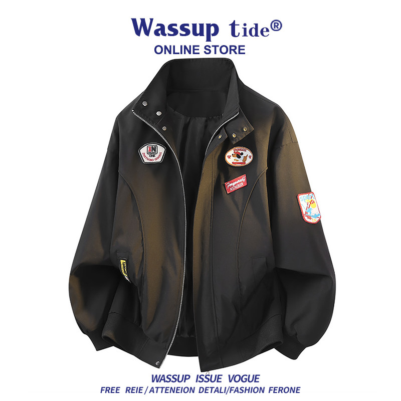 WASSUP TIDE立领春秋季宽松美式复古贴标棒球服 潮酷百搭显瘦显高