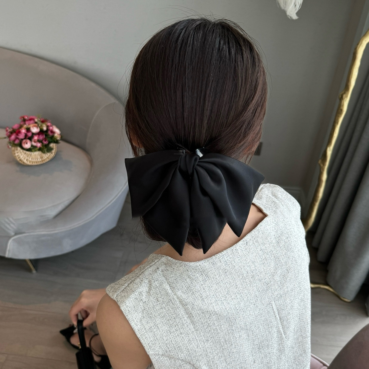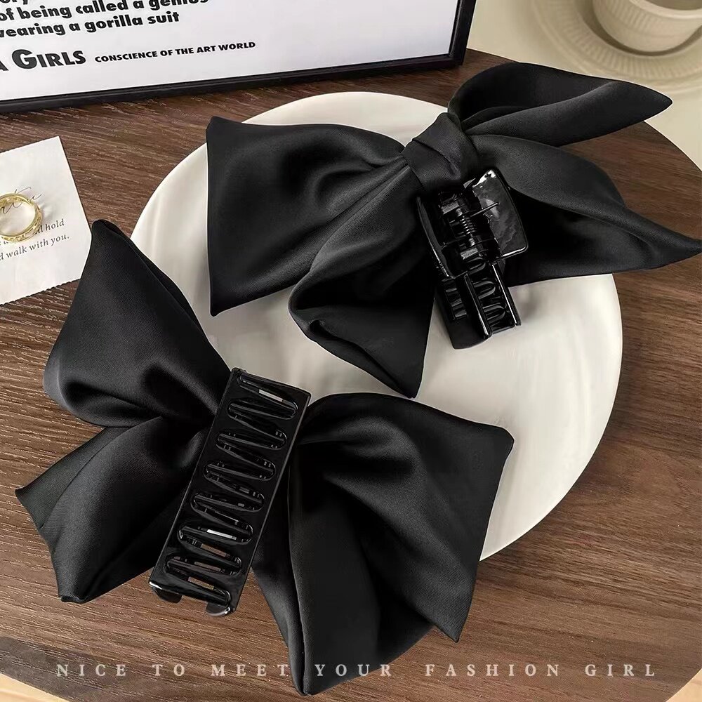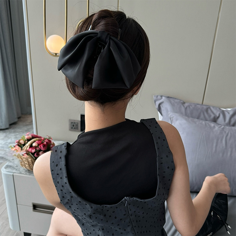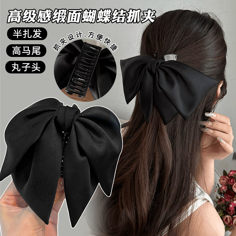 法式高级感黑色缎面蝴蝶结发夹气质半扎发盘发抓夹后脑勺鲨鱼夹子