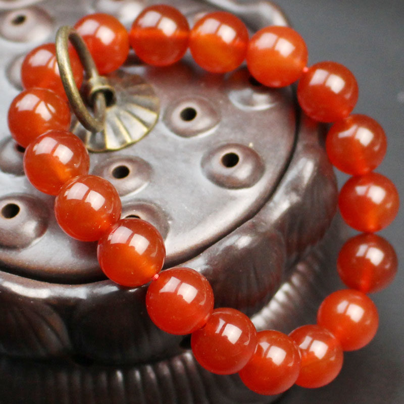 厂家批发天然红玛瑙手串酒红色本命年男女情侣水晶手链饰品小礼物