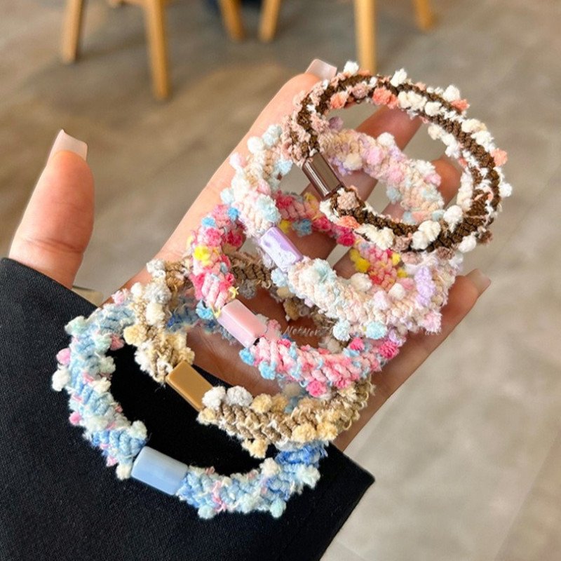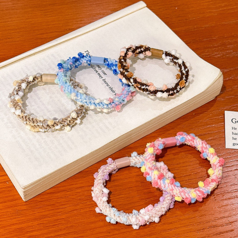 温柔编织点彩豆豆韩系撞色高弹力耐用马尾皮筋新款小众冰淇淋发绳