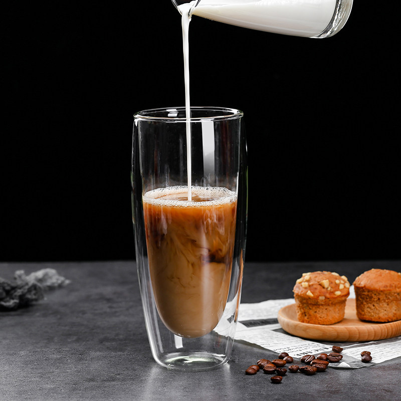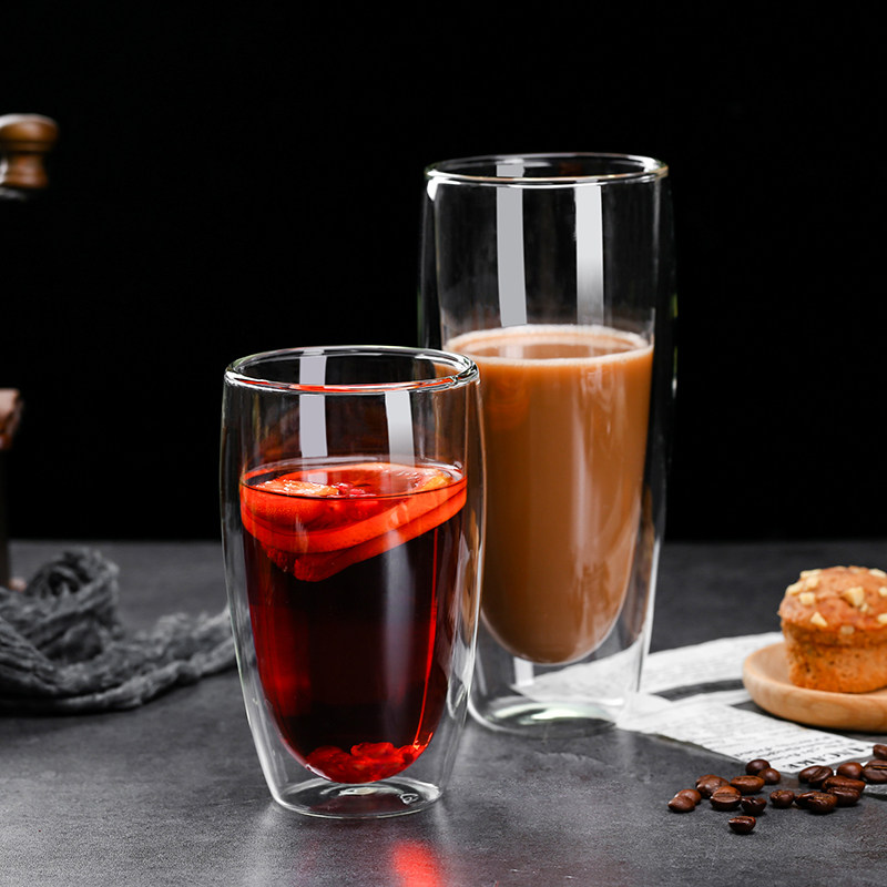 双层玻璃杯不烫手咖啡杯耐热耐高温家用杯子透明玻璃花茶杯泡茶杯