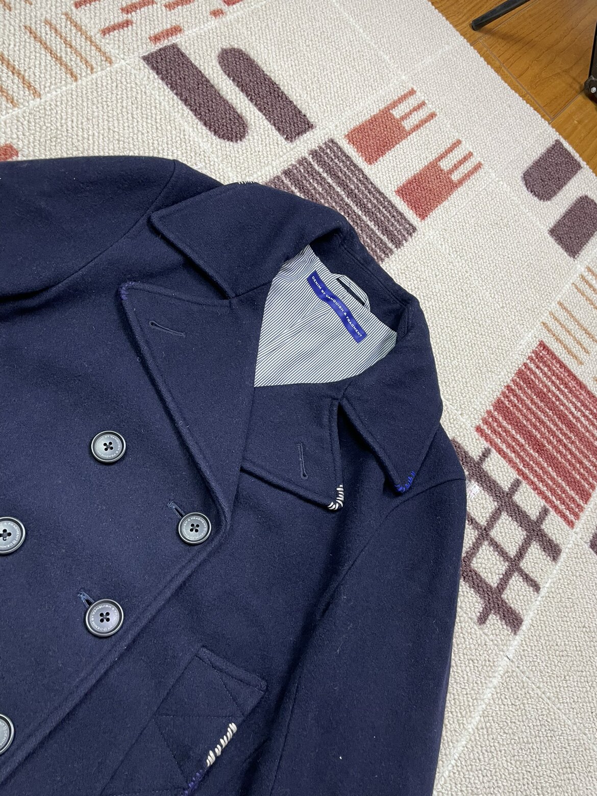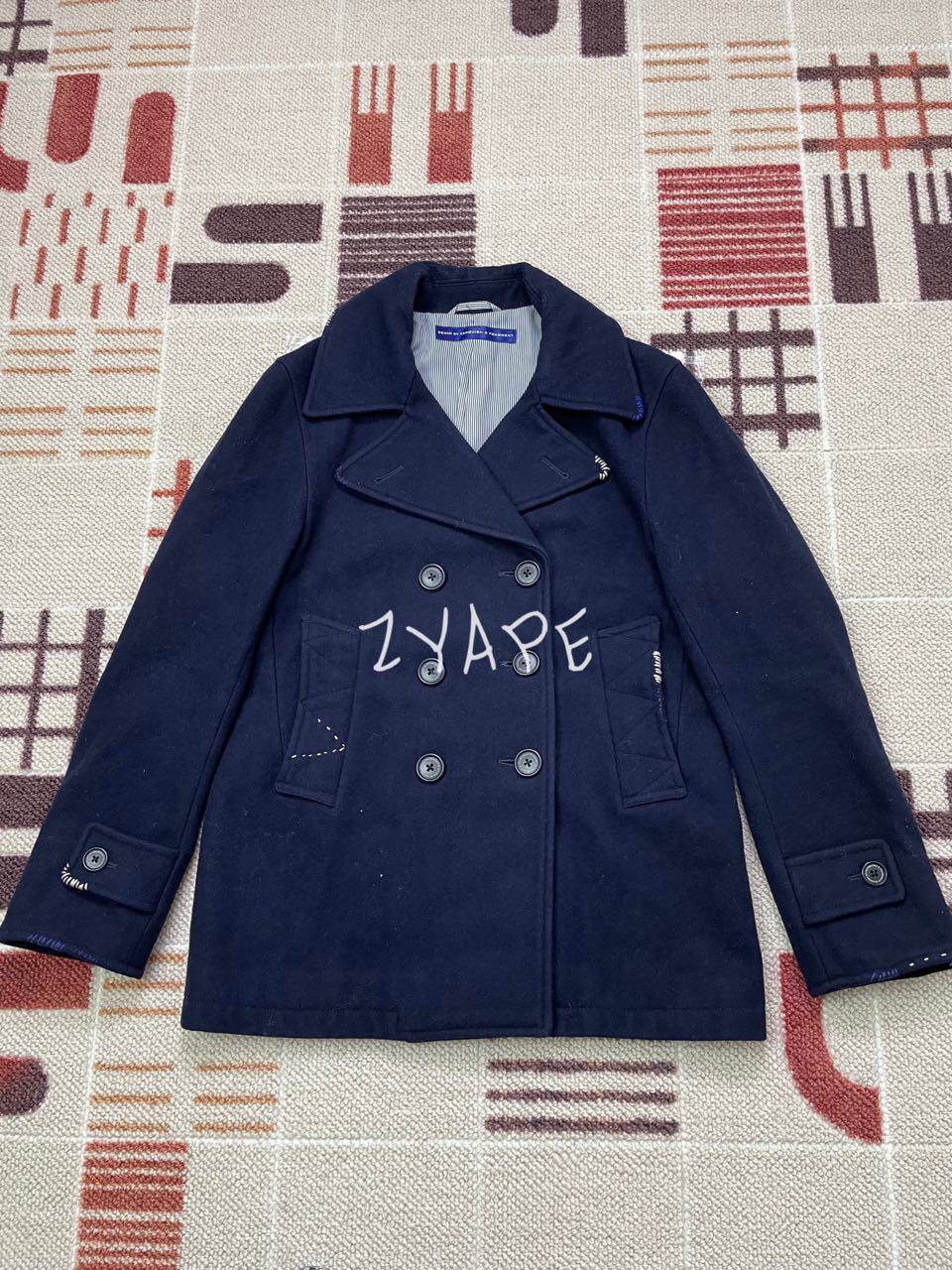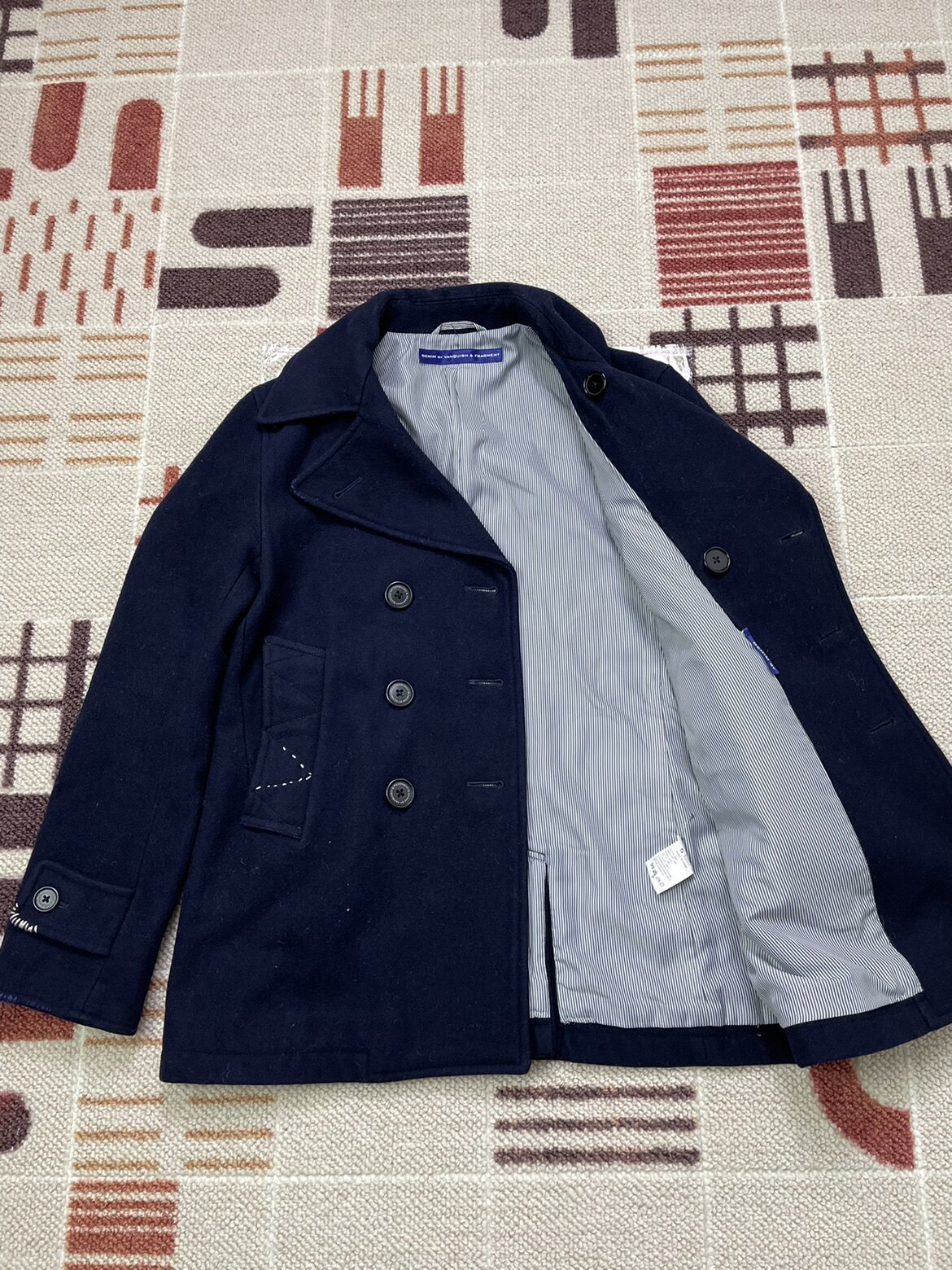 DENIM BY VANQUISH & FRAGMENT 藤原浩蓝白线毛呢大衣
