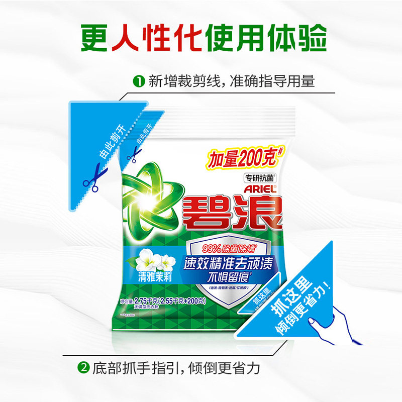 碧浪洗衣粉清雅茉莉香型清洁去渍家用实惠袋装大包装正品促销