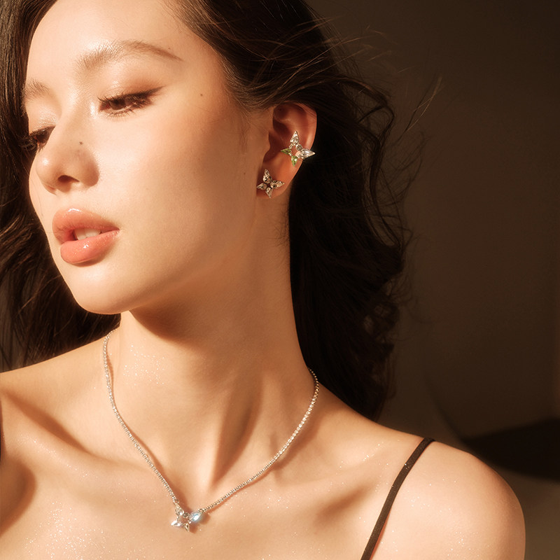 abyb蝶语耳钉耳骨夹女无耳洞蝶语蝴蝶小众设计无痛耳饰耳环女