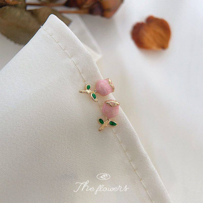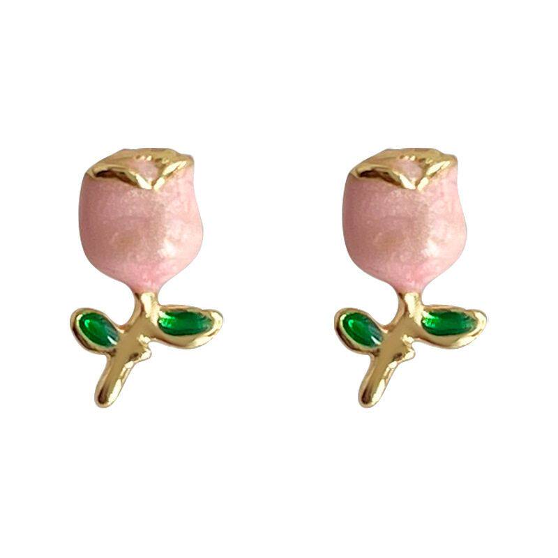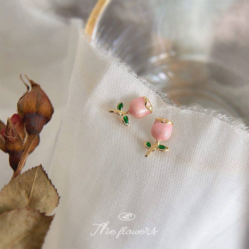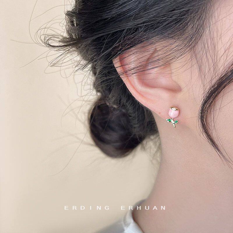 甜美可爱少女粉郁金香珐琅滴釉耳钉通勤百搭简约小巧设计感耳环女