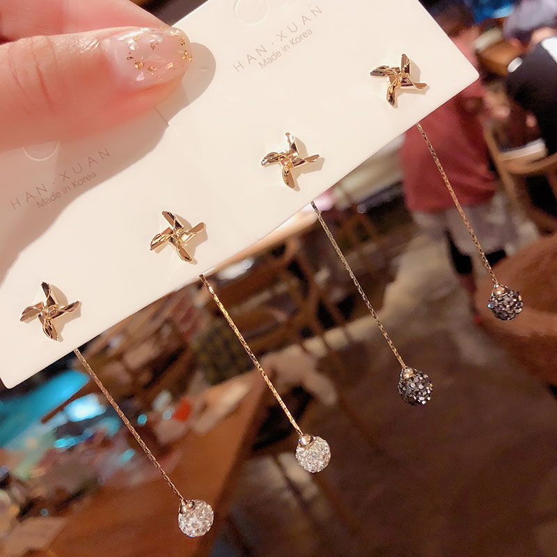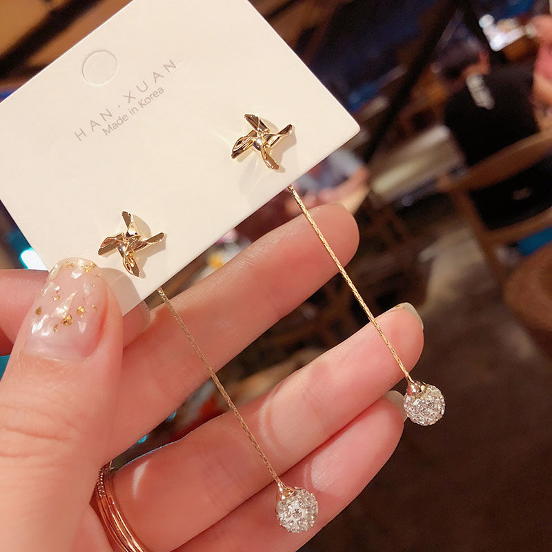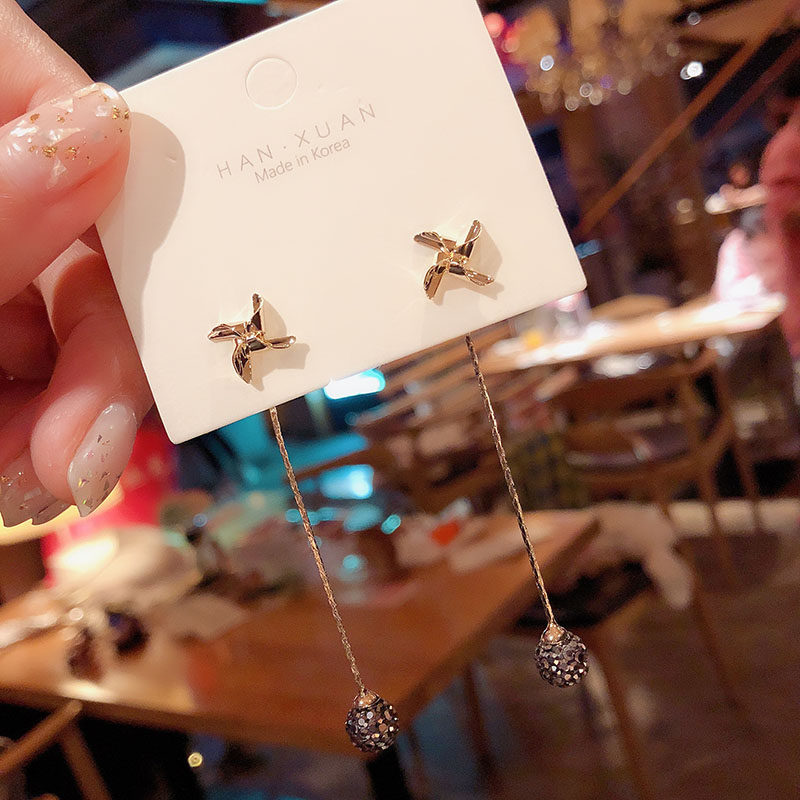 韩国东大门个性风车流苏耳环女气质百搭时尚简约耳饰925银针耳钉