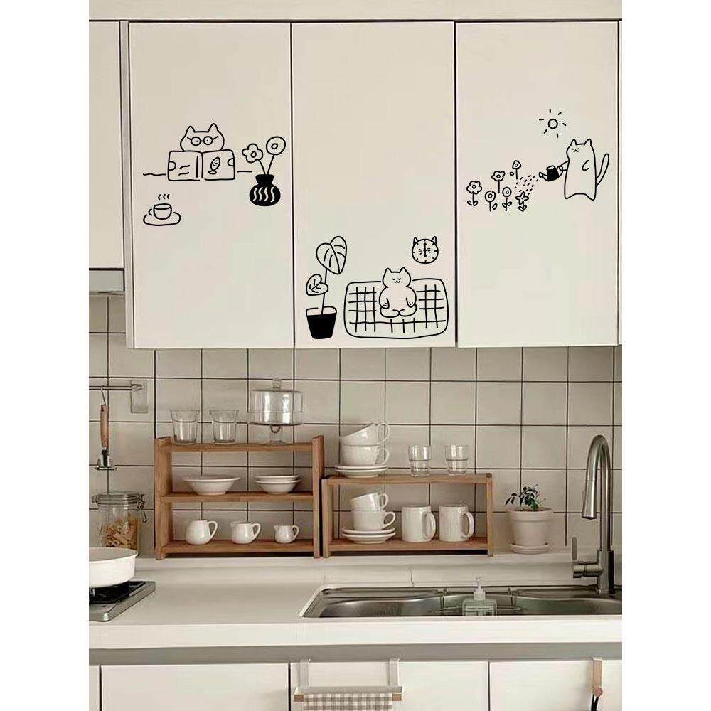 慵懒猫咪创意卡通可爱贴纸厨房玻璃推拉移门装饰防撞餐饮店铺墙贴