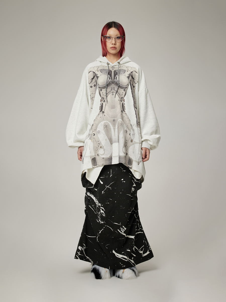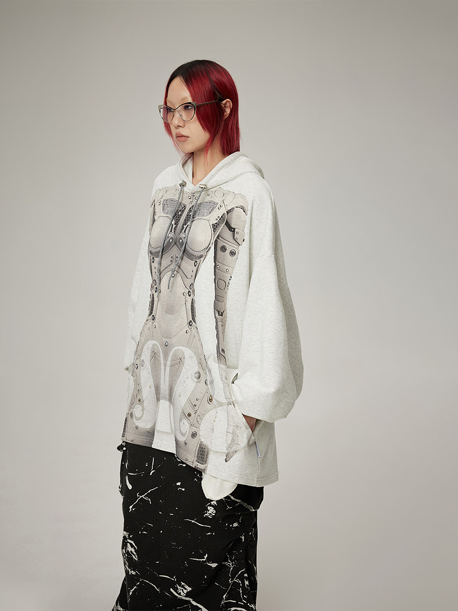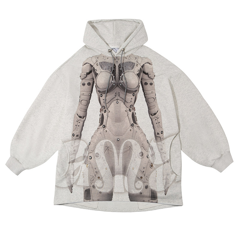 DAMAGE ASIA 赛博姬AI机器人印花未来感连帽宽松卫衣 24秋冬