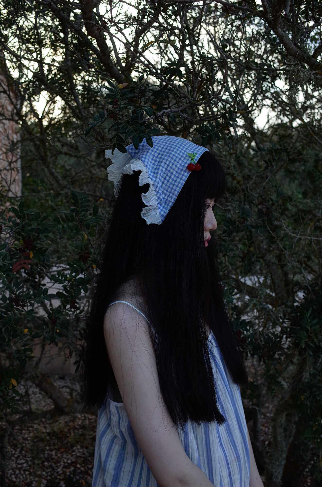 Shiitake 碎花蕾丝樱桃格子氛围感少女心头巾发箍