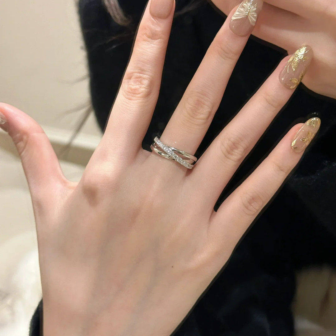 自带高级感的_简约三环戒指冷淡风闪钻开口戒女个性轻奢小众设计