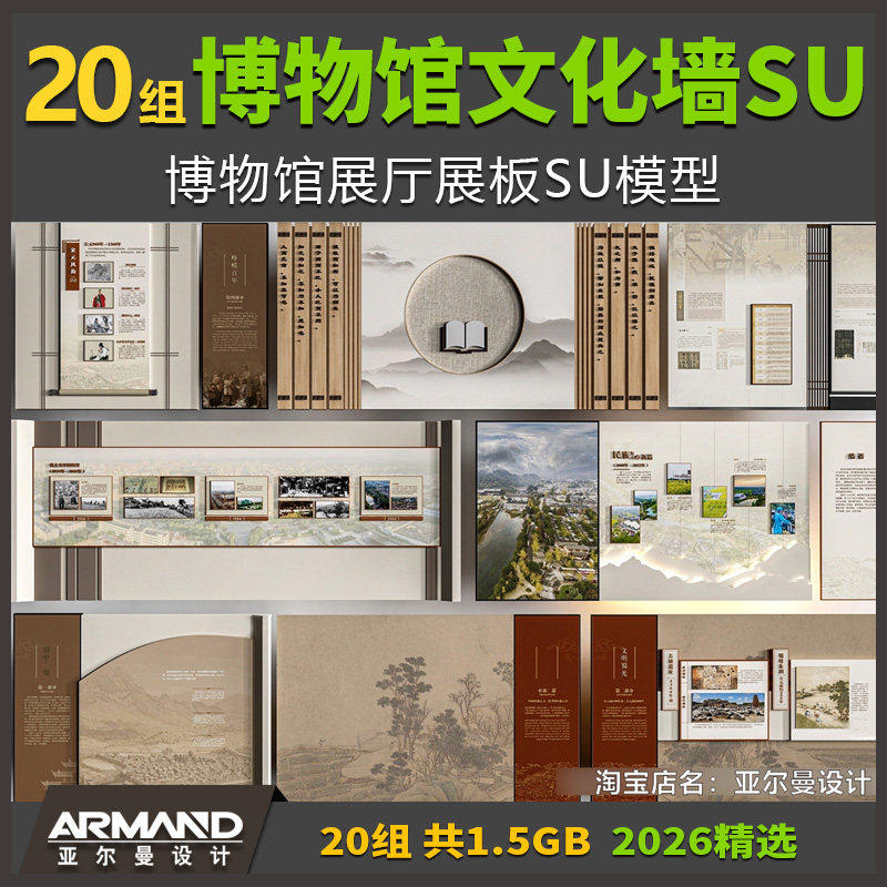 博物馆文化墙SU模型 展厅展板宣传栏草图大师模型室内设计素材