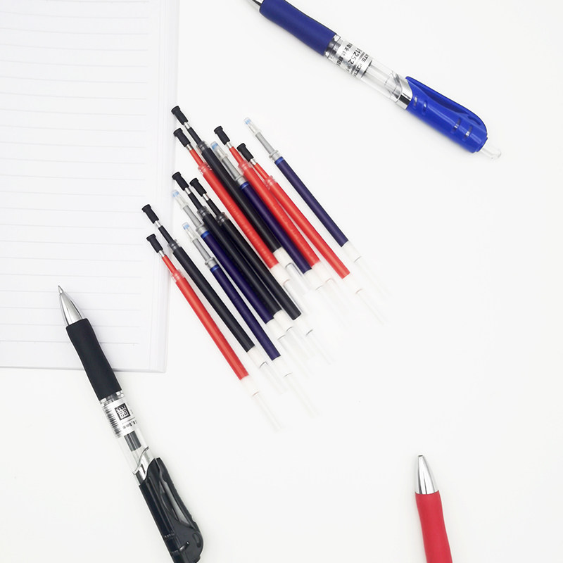欧标替芯按动中性笔芯0.5mm子弹头水笔芯大容量笔替芯签字笔芯学生办公用品红色蓝色黑色20支装B1352